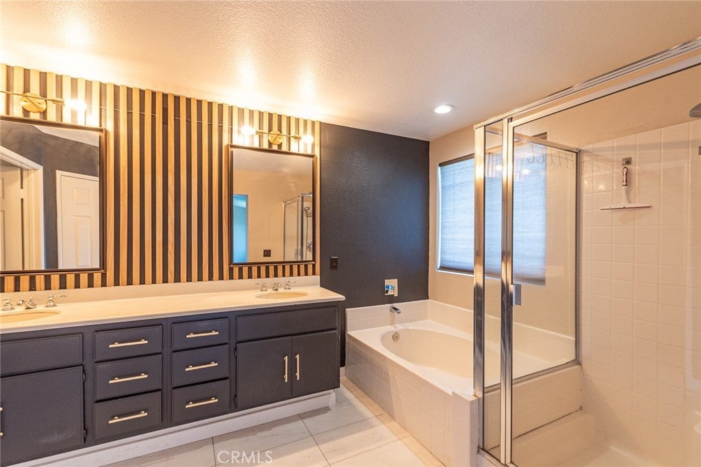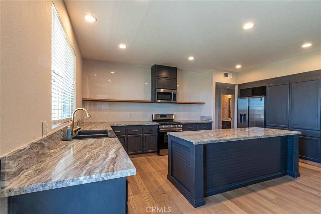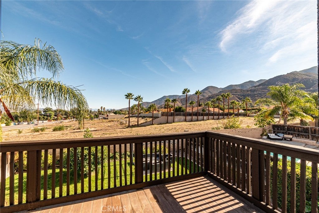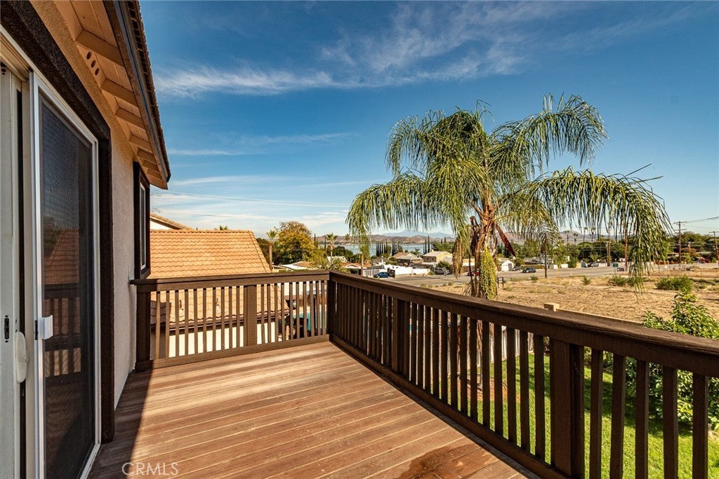 Welcome to this spacious beautifully updated two-story home featuring 4 bedrooms and 3 full bathrooms, ideally located in a desirable Lake Elsinore neighborhood. The entire home has been freshly painted inside and outside offering a bright and modern feel throughout. Stepping through the front door into the formal living room there is a built-in electric fireplace and an entertainment center which is perfect for relaxation or entertaining guests. Continuing into the open-concept dining area is a wine cooler and a remodeled kitchen featuring new stainless-steel appliances, a large island, and ample storage cabinets. The first floor offers a private bedroom with an adjoining full bath which is ideal for guests or for a home office. A staircase from the living room leads to the second-floor loft which is ideal for a family room, a study, or a media area. The laundry room is conveniently located upstairs near all bedrooms. To the right of the loft are two bedrooms featuring ample closet space and a shared full bathroom. To the left of the loft is the primary suite which offers a peaceful retreat with a sitting area, a walk-in closet, and a luxurious ensuite bathroom featuring dual sinks, a soaking tub, and a separate shower. Stepping out on to the private balcony to the left is a beautiful lake view and to the right is the view of the mountain ranges and valley. The front yard is meticulously landscaped with water-efficient plants, dwarf palm trees, roses, and privacy shrubs. A spacious two-car garage comes equipped with a water filtration system providing clean filtered water throughout the home. The large backyard with a pergola, outdoor seating area, lush green lawn, a tall palm tree, and an avocado tree is perfect for entertainment. This house is located just minutes from the lake, hiking, and biking trails. This is a MOVE-IN READY home. Don't miss your chance to make it yours. Schedule a visit today! Buyer(s) and the selling agent(s) are to do their due diligence to ascertain the accuracy of the information provided.