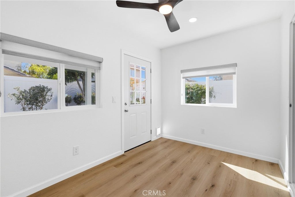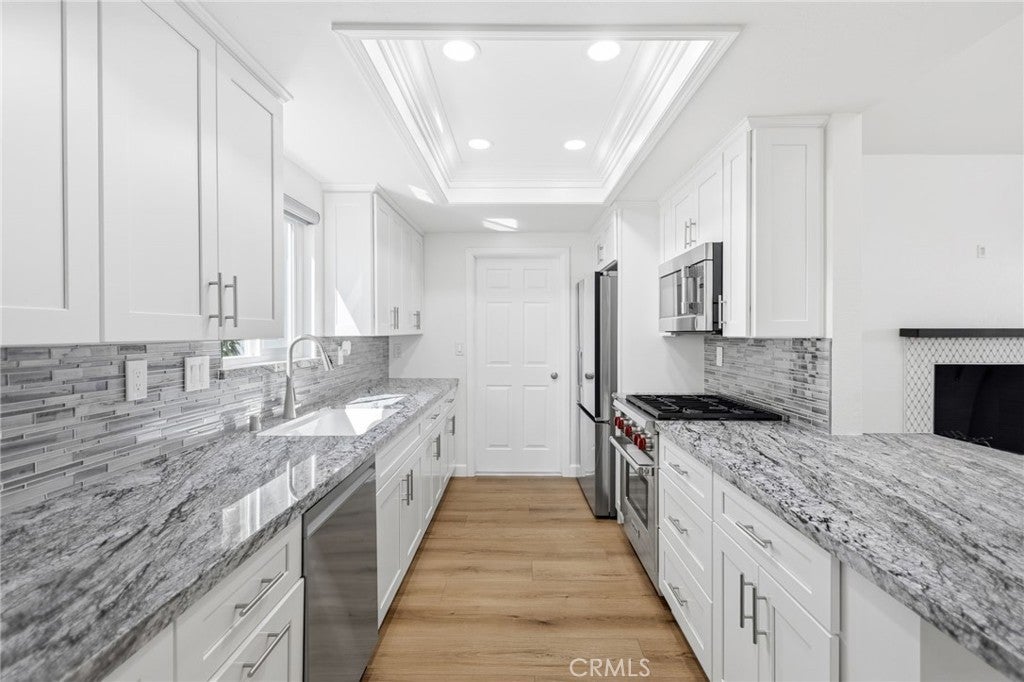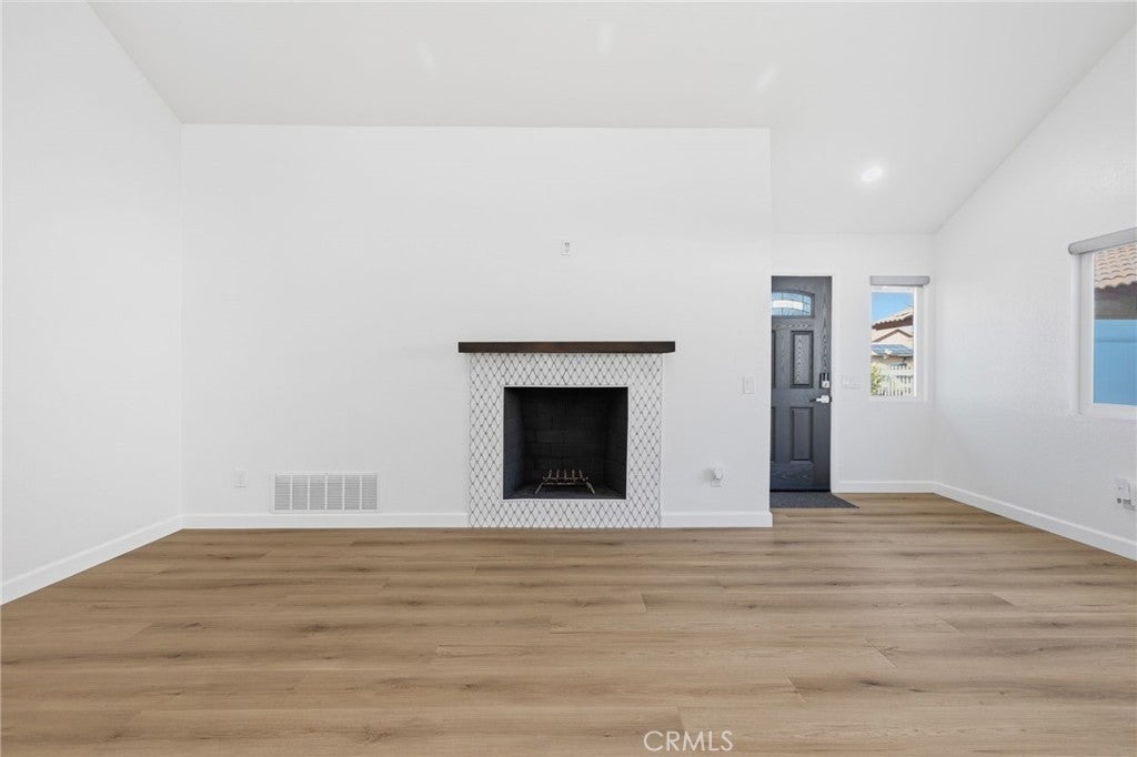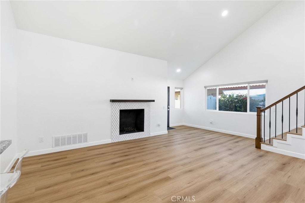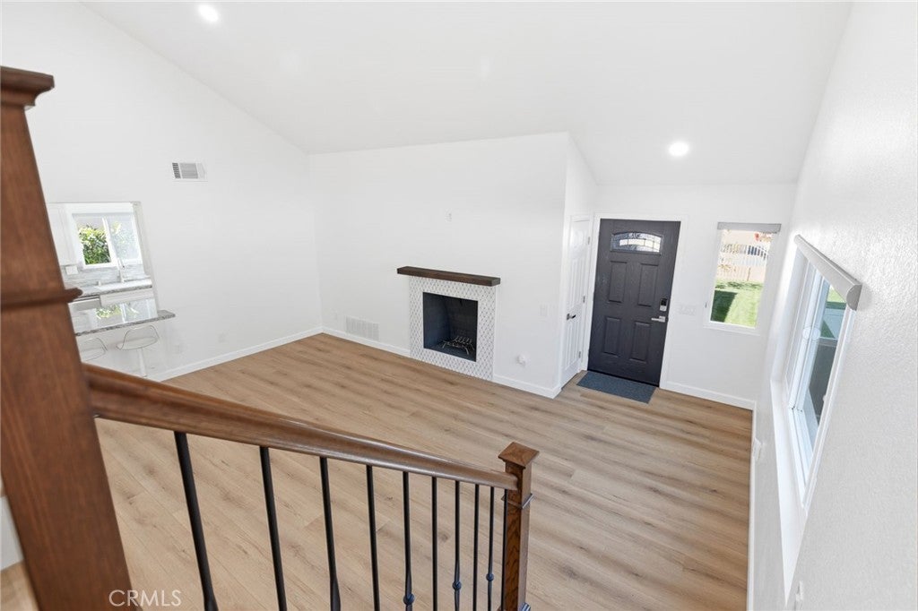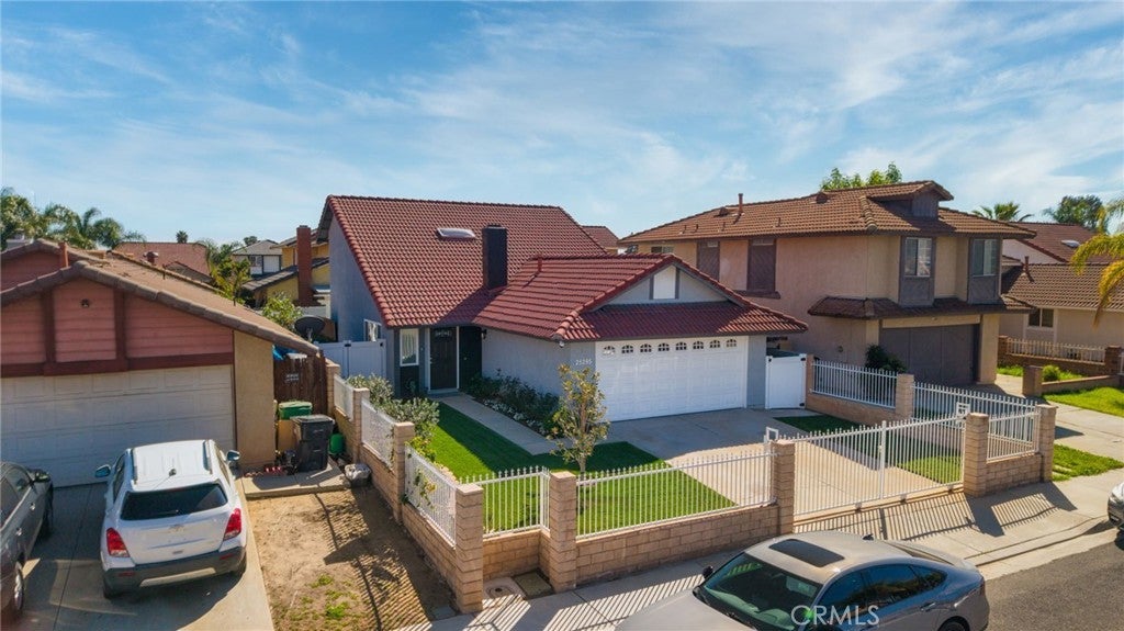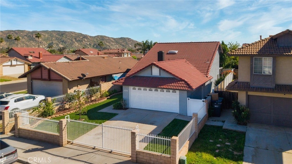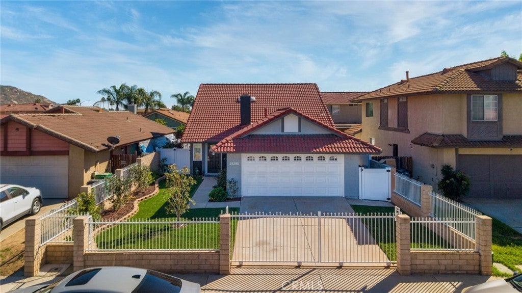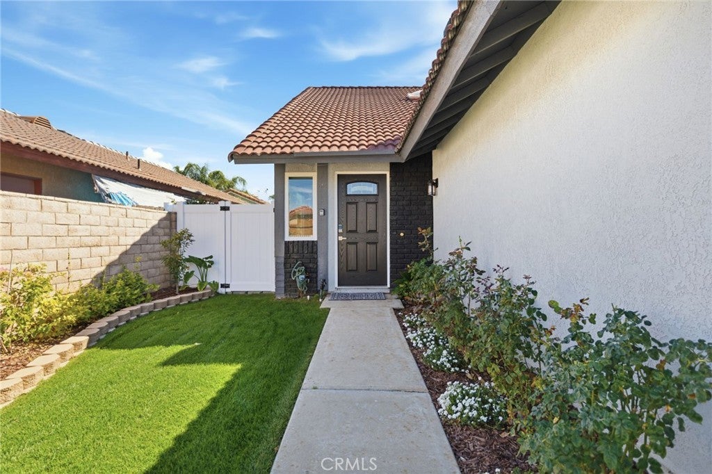 Welcome to 25295 Wendy Way in Moreno Valley, California — a beautifully remodeled starter home you won’t find anywhere else! This 3-bedroom, 2-bathroom, 1,227 sq ft home is move-in ready and brimming with charm and modern updates. From the curb, enjoy lush grass, vibrant planter flowers, and a crisp white vinyl fence welcoming you in. Step inside to an updated front door and be greeted by gorgeous laminate wood flooring, large modern windows with custom ceiling-to-floor coverings, and recessed lighting throughout. The living room features a stylish fireplace with updated tile décor and a floating shelf mantle, perfect for cozy gatherings. The kitchen shines with white shaker cabinets, stunning granite counters, a sleek backsplash, and stainless steel appliances included for the new owner, complemented by chrome hardware and elegant modern finishes. Every bedroom has updated ceiling fans and recessed lighting, and one bedroom downstairs includes a private sliding door leading to the backyard. Both bathrooms have been fully remodeled with new cabinets, quartz counters, updated tile showers, and modern hardware. Upstairs, the two spacious bedrooms are accessed via a wood staircase with elegant wrought iron railings. A small bonus room adds versatile space that can be used as an office, workout area, gardening nook, or multi-functional space to fit your lifestyle. Step outside to a backyard oasis featuring a vinyl-covered lattice patio with a fan, retaining walls with beautiful plants and trees along the updated vinyl fence, and a private gated area to secure vehicles. Conveniently located near shopping, schools, and just 10 minutes from freeway access, this home has been upgraded from top to bottom, leaving nothing behind — truly the perfect blend of style, function, and comfort. Schedule your Private showing!