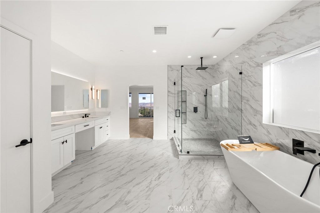 STUNNING NEW BUILD IN CORONA! Welcome to this stunning brand-new construction offering 3,501 square feet of thoughtfully designed living space. Every detail of this 5-bedroom, 3.5-bath home has been crafted for modern living, comfort, and style. Step inside to a bright and open floor plan featuring high ceilings, clean modern finishes, and luxury vinyl plank flooring throughout. The gourmet kitchen is the centerpiece of the home, showcasing sleek white cabinetry, quartz countertops, stainless steel appliances, and a large center island perfect for entertaining or family gatherings. The kitchen opens seamlessly to the dining and living areas, creating a true open-concept layout filled with natural light. Downstairs includes a private bedroom with a full bath, ideal for guests or multi-generational living, along with a convenient half bath for visitors. Upstairs, the spacious primary suite offers a spa-inspired bathroom with dual sinks, a large soaking tub, and a walk-in shower. Four additional bedrooms provide plenty of space for family, home office, or flex needs. Outside, the large fenced backyard offers endless possibilities to design your dream outdoor retreat — whether you envision a pool, covered patio, or garden space. Seller to Review Offers on March 2nd