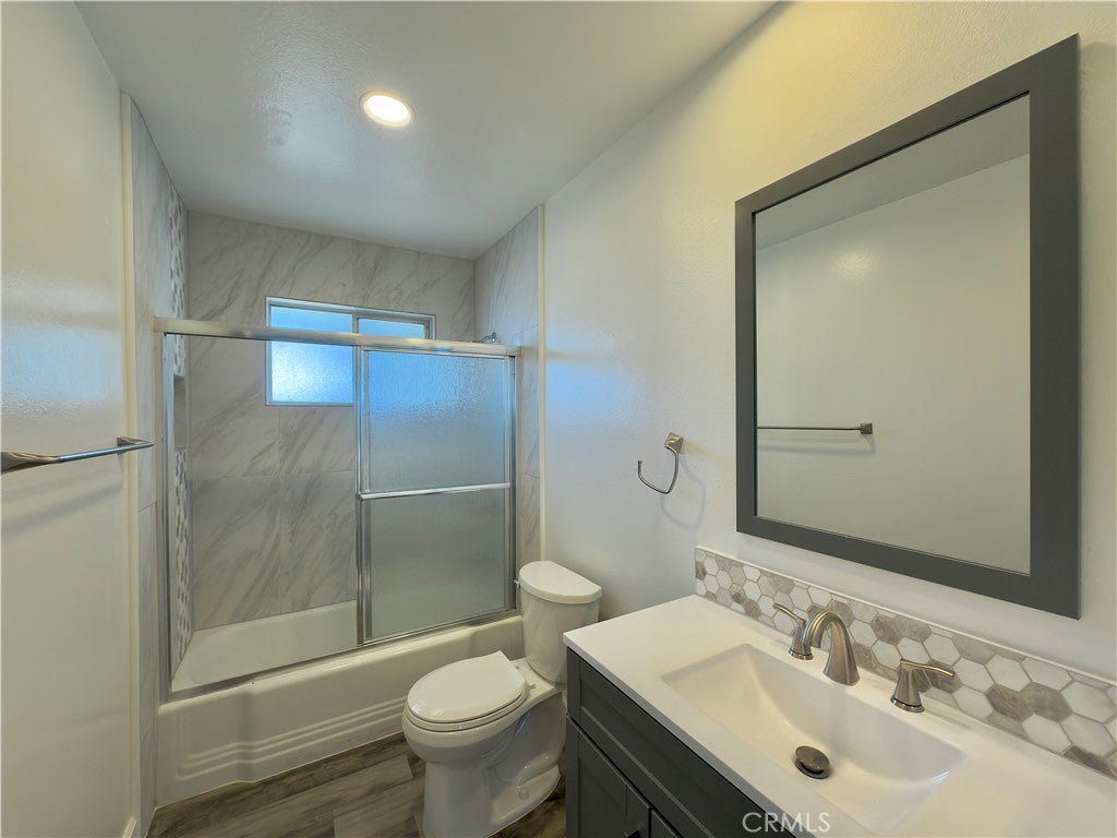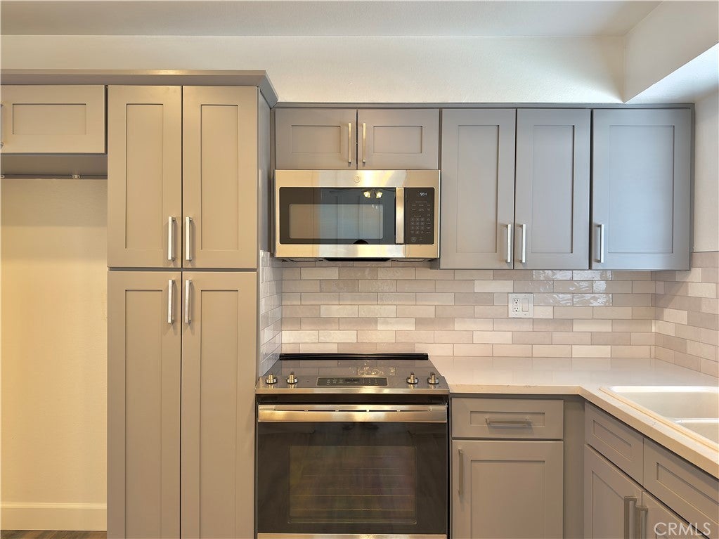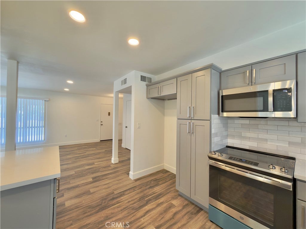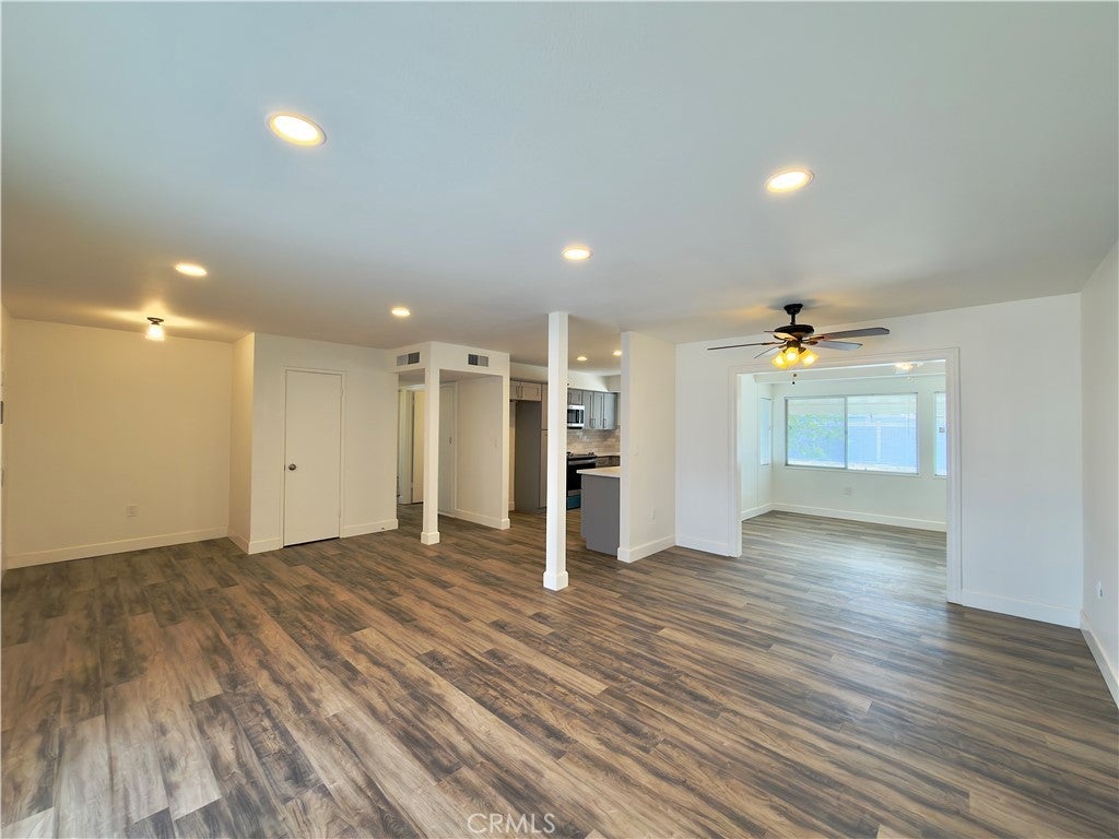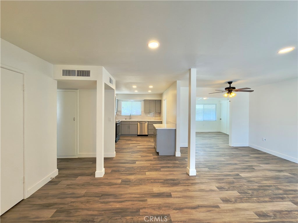 Fully renovated turnkey home in one of southern California's largest active adult communities. This open floor plan home has been upgraded from top to bottom: freshly painted interior and exterior, luxury vinyl plank flooring throughout the entire home, new kitchen and vanity cabinets with quartz countertops and designer tile backsplashes, all new stainless steel appliances, designer tile shower, recessed lighting in the living areas and bathroom, window coverings, as well as brand new washer and dryer included.