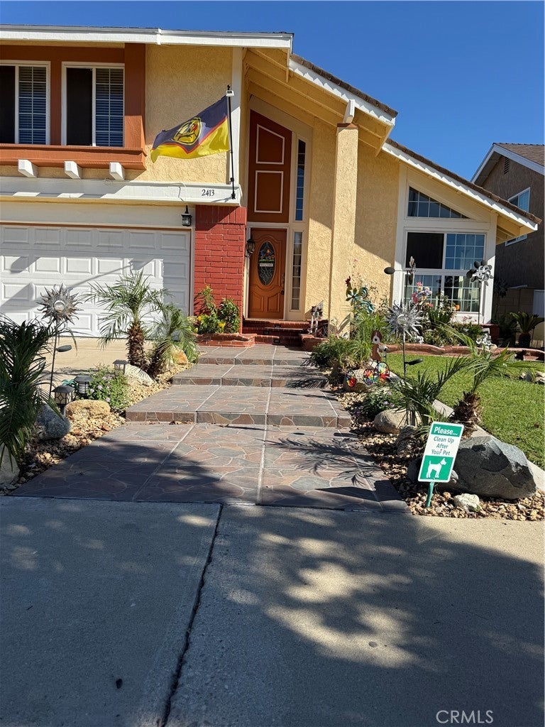 Welcome to this beautifully maintained two-story home located in the heart of Ontario! This spacious 4-bedroom, 2.5-bathroom residence showcases pride of ownership throughout and offers stunning curb appeal. The home features a two-car garage and a thoughtfully designed floor plan perfect for comfortable living and entertaining. Step inside to find a bright and inviting main floor that includes a formal living room, a cozy family room with a fireplace, and a spacious dining area ideal for gatherings. Large windows fill the home with natural light, creating a warm and welcoming atmosphere. The first floor also includes a convenient half bathroom for guests. Upstairs, you’ll find the primary suite complete with its own private master bathroom. The three additional bedrooms are generously sized and share a well-appointed hallway bathroom. The backyard is a true retreat—featuring a covered patio, lush landscaping, multiple fruit trees, and sprinklers in both the front and back yards for easy maintenance. The property also includes solar panels (see remarks for details), adding energy efficiency and value. Conveniently located near schools, parks, major shopping areas, and with easy access to the 60 freeway, this home offers both comfort and convenience in a prime Ontario location.