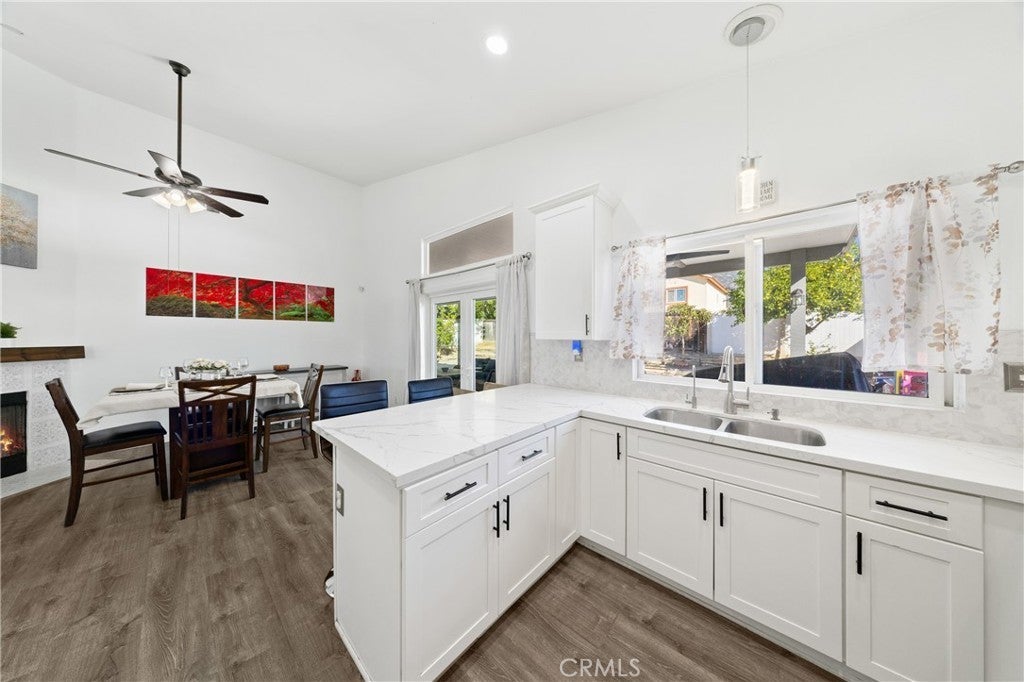 Upgraded 4-bed, 2-bath home in North San Bernardino with solar panels and mountain views! Features 1,646 sq ft of living space on a 7,200 sq ft lot, brand-new kitchen with quartz countertops, stainless-steel appliances, and reverse-osmosis system. Both bathrooms have recently been upgraded with modern finishes. Vaulted ceilings, dining-area fireplace, French doors to covered patio with ceiling fans, and spacious master suite with dual sinks. Tankless water heater, indoor laundry, and beautiful front staircase entry. Close to Devore, Cal State SB, shopping, and freeways. Don’t wait, schedule your showing today!