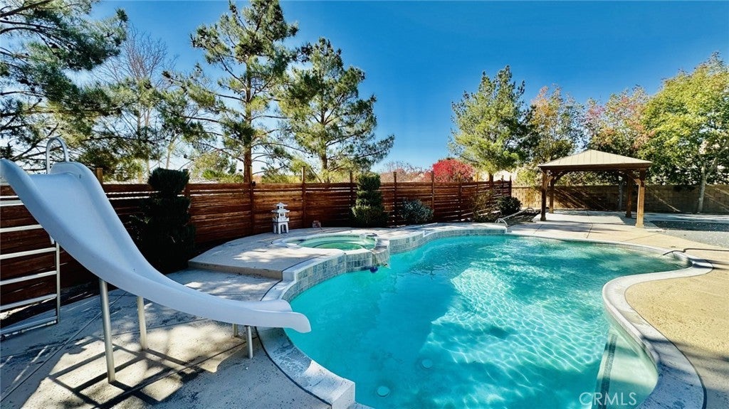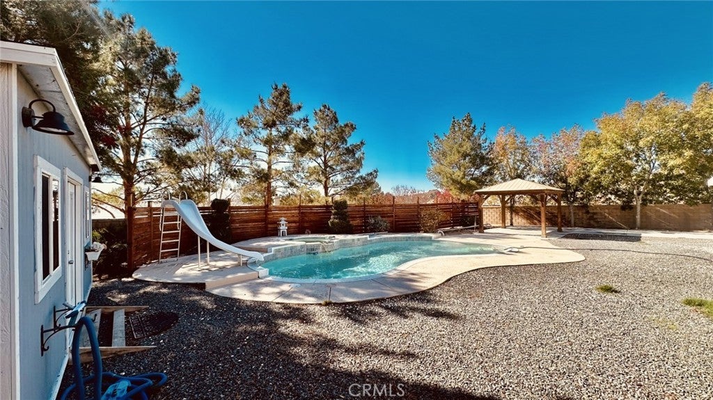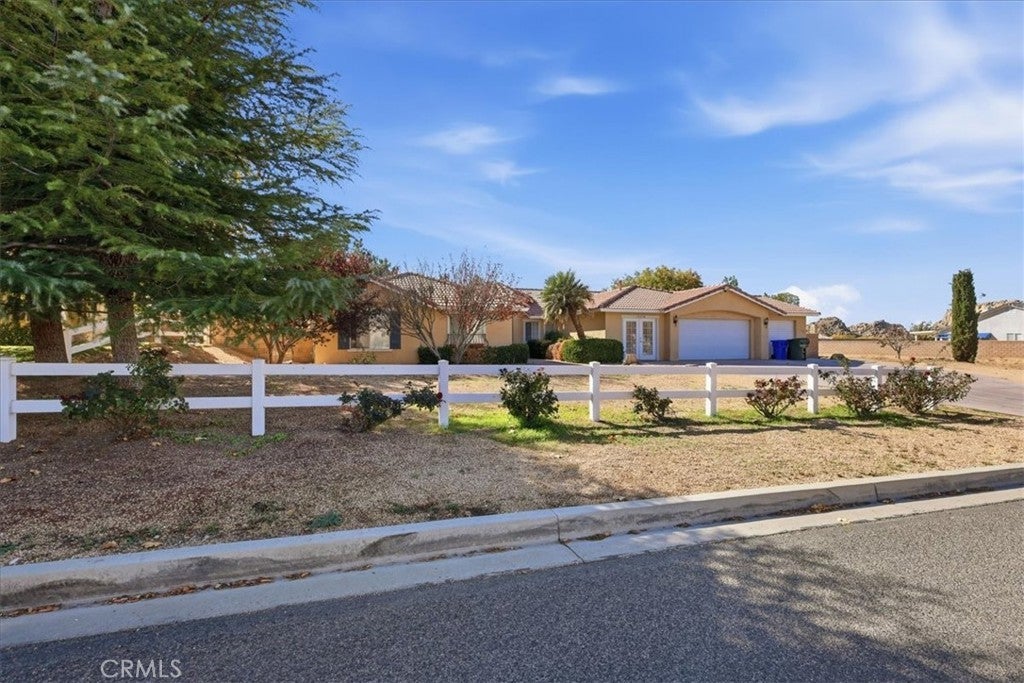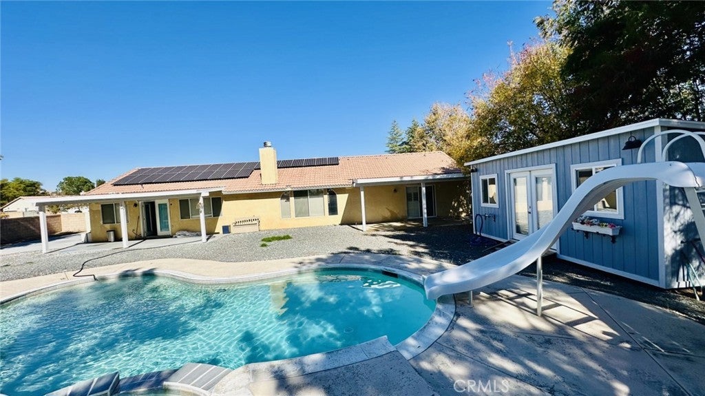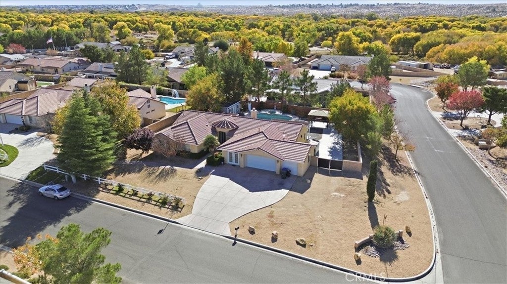 Welcome to your desert oasis! This stunning Apple Valley home combines modern luxury with panoramic high Desert views. Situated on a spacious lot in a quiet sought-after neighborhood. This property offers comfort, privacy, and elegant design throughout with a 27 panel solar system included. Open-concept floor including a spacious office with French doors, abundant natural light and vaulted ceilings. Gourmet kitchen featuring granite countertops, custom cabinetry, and stainless-steel appliances.Spacious primary suite with walk-in closet, dual vanities, and a soaking tub.Formal dining area and inviting living room with fireplace perfect for entertaining. Three-car garage with an extra room and office space, and ample driveway parking.Beautifully landscaped front yard and expensive backyard ideal for gatherings with a pool that comes with a newer pump and filter system , jacuzzi and full bath. Suitable backyard for mechanics and Handymen. Breathtaking mountain and valley views from the patio and living areas with a feel of the color Rose Gold. Located just minutes from shopping, dining, and award-winning schools and a charter school 2 blocks way. This home offers the best of Apple Valley living, peace, space, convenience and luxury all in one including RV access and 80ft RV space.Seller motivated to sell.Price dropped.