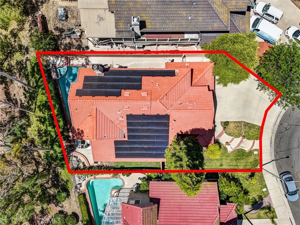 This gorgeously remodeled pool home in the prestigious Lake Hills neighborhood sits at the end of a cul-de-sac and has paid off solar complete with 40 panels! This one of a kind property boasts 2,840 sq ft of living space with 4 bedrooms plus an oversized loft and 3 full bathrooms. Entering the home you are greeted into the main living room that opens to the dining room where you have a large slider leading off to the back patio. As you pass through to the separate family den it flows right into the fully remodeled kitchen with refinished cabinetry and Quartz counter tops that are accented by a beautiful subway tile backsplash. The kitchen is fully equipped with a new double oven and sink with faucet. Downstairs you have one bedroom and a tastefully remodeled bathroom and also your laundry room with a door leading to your backyard. Upstairs your oversized primary bedroom has soaring vaulted ceilings and two separate closet spaces for ample storage needs. There are an additional 3 bedrooms upstairs and a large loft that has a large set of built in shelves and desk currently set up as an office and could easily be used as a 5th bedroom. The backyard on this home is the perfect setting for entertaining or relaxing in the pool as your backyard is nestled up against a serene lush strip of trees and shrubs providing ample privacy. Garage is also set up with car charging capabilities. Your dream home has finally arrived! Separate utility flat charge of $500 will be charged to tenant and will cover all utilities including cost to keep pool filled.