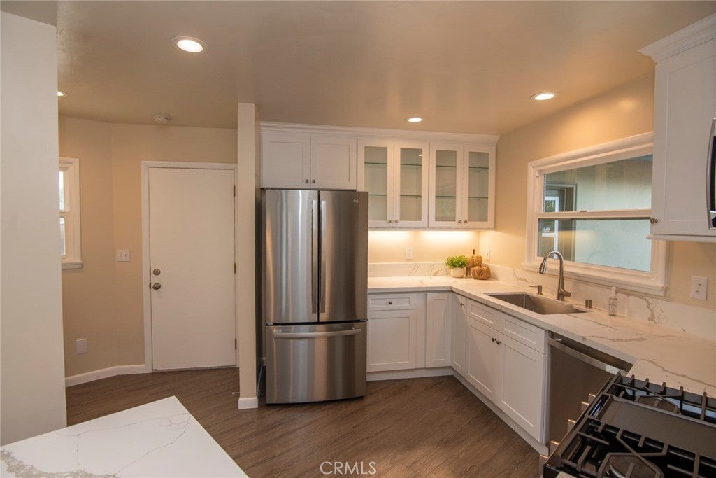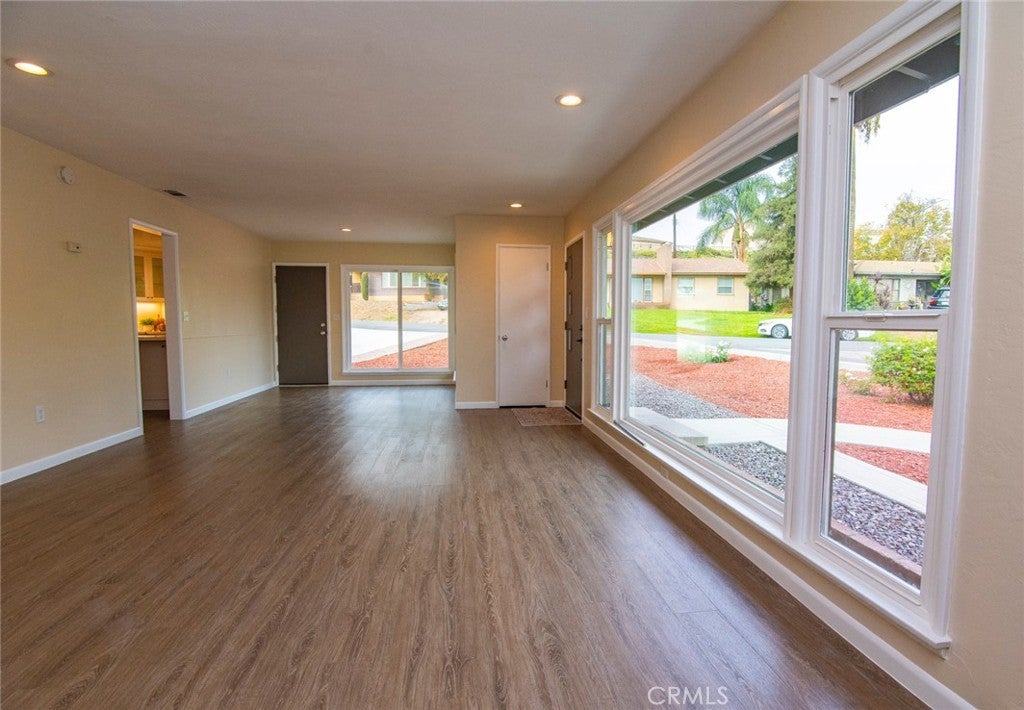 BACK ON MARKET! BUYER LAID OFF 6 DAYS BEFORE CLOSING, APPRAISAL IN, CLEAR TERMITE! BRING YOUR BUYER TODAY!! Welcome home to this spacious 3 bedroom 2 full bath home. Enter the Huge living room with cozy corner fireplace that flows into the dinning room, giving a light open "great room" feel to the living space. Next is the newly remodeled kitchen, including all new cabinets, lots of quartz counter space and tons of storage. All new Stainless steel appliances, including gas stove, microwave, dishwasher and refrigerator, finish off this great remodel. Don't miss the luxury vinyl plank flooring throughout this home that pulls it all together.. Bathrooms have also have upgraded cabinets and new fixtures. Modern upgraded lighting and ceiling fans in bedrooms, and of course central heat and AC! Add to this an enormous corner lot with low maintenance landscaping, large patio in back yard with many fruit trees just waiting for outdoor gatherings! A Two car attached garage, plus large driveway complete the picture. Located in the quiet La Sierra neighborhood of Riverside, this home is close to La Sierra University, schools, shopping and Riverwalk. Easy commute from 91 or 15 Fwy. This is a "must see" home you will want to call your own!