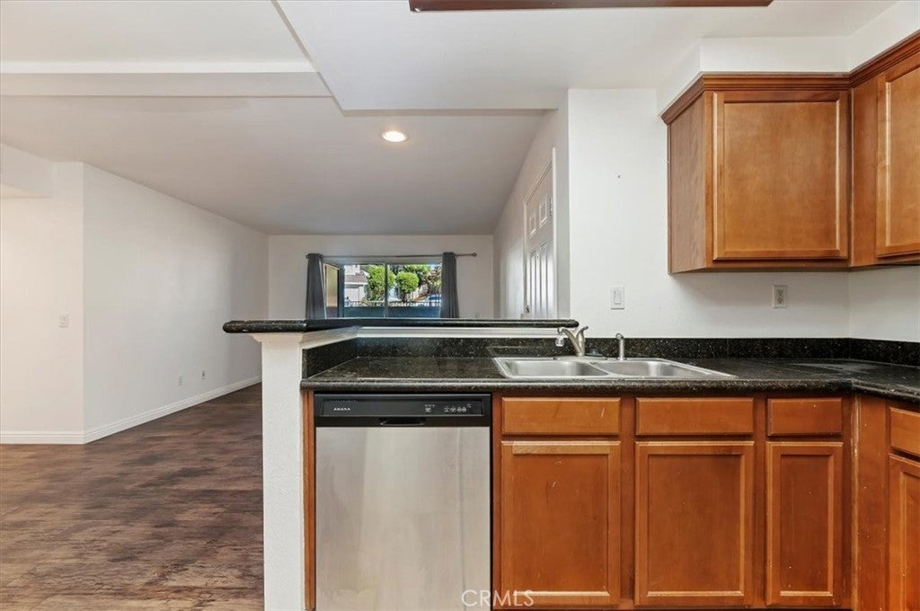 Charming Ground-Floor Condo in Mission Grove Villas. Welcome to this inviting 2-bedroom, 2-bath condo ideally situated in the sought-after Mission Grove Villas community! This desirable unit offers privacy, convenience, and a comfortable single-level layout with two spacious patios — perfect for morning coffee or relaxing evenings outdoors. Inside, you’ll find beautiful laminate flooring, a light-filled living area, and a functional kitchen ready for your personal touch. The primary suite features an en-suite bath and private patio access, while the second bedroom is ideal for guests, a home office, or flex space. The unit also had approved plans to add an in-unit washer and dryer, enhancing everyday convenience (Buyer will need to submit and complete plans in their name). Mission Grove Villas residents enjoy resort-style amenities including a sparkling pool and spa, BBQ area, laundry room, and well-maintained landscaped grounds. The HOA includes water, trash, and exterior maintenance, making this the perfect low-maintenance lifestyle.
