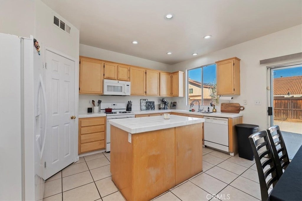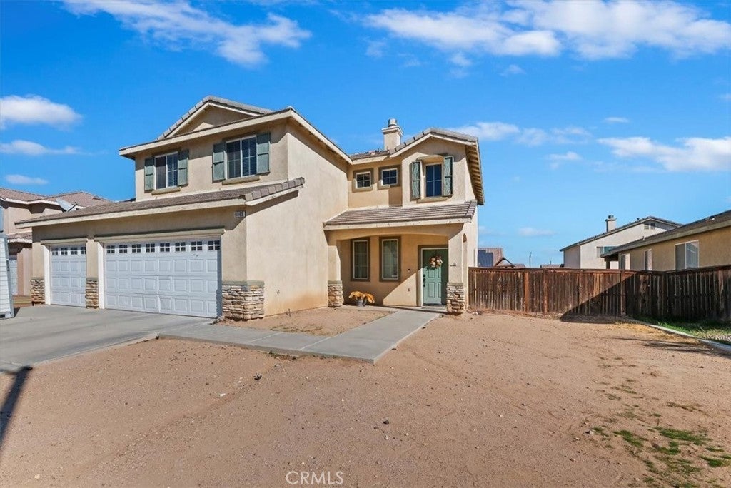 Beautiful 5 Bedroom Home in Hesperia! Welcome to this spacious two story home built in 2004, offering 5 bedrooms and 3 bathrooms with room for the whole family. The thoughtful floor plan features four bedrooms upstairs and one conveniently located downstairs, perfect for guests or a home office. The primary suite includes a double sink vanity and plenty of space to unwind. The home features tile and carpet flooring throughout, an open kitchen ideal for entertaining, and a large 3 car garage with ample driveway parking.Located near shopping centers, restaurants, and major freeways, this home offers both comfort and convenience. Whether you’re looking for the perfect family home or an investment opportunity, this property is move-in ready and waiting for you.