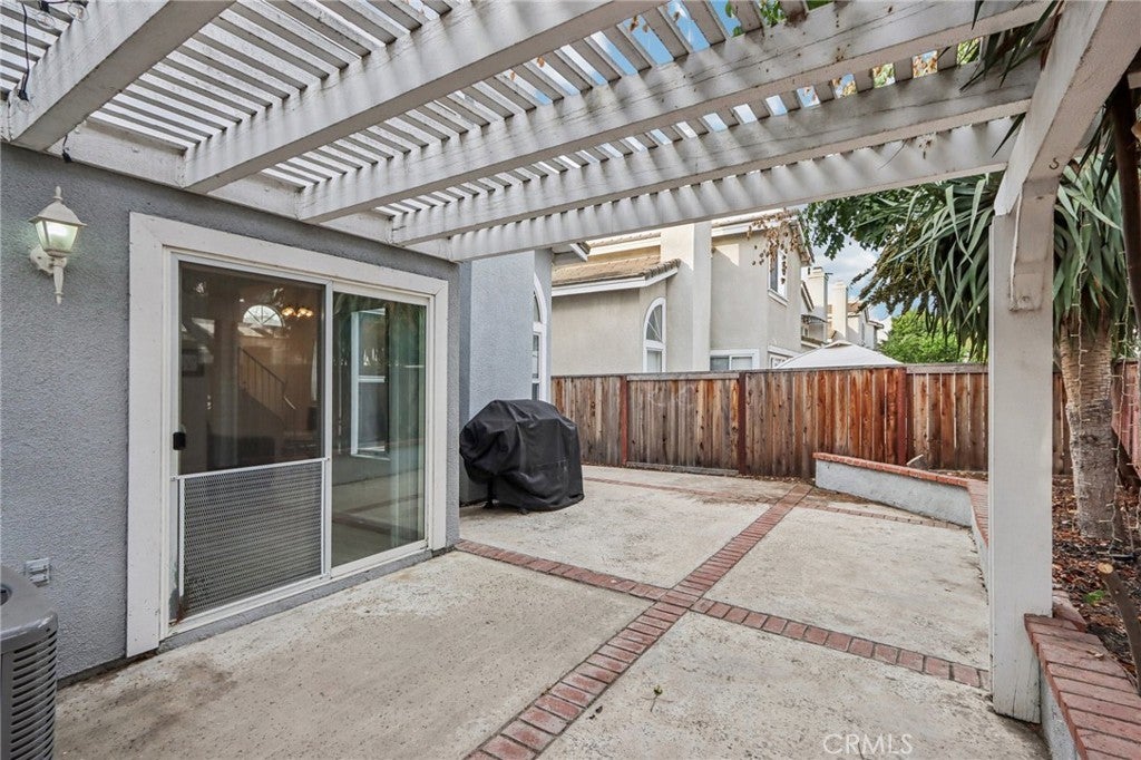 This beautifully maintained townhouse offers a bright and open interior with vaulted ceilings and laminate flooring throughout. The inviting living room features a cozy fireplace and flows seamlessly into the dining area with a slider opening to a spacious private patio complete with a pergola, mature trees, and plenty of room for dining, lounging, and BBQs. The kitchen includes granite countertops, stainless steel appliances, and convenient access to the laundry room, powder room, and direct entry to the attached two-car garage. Recent upgrades include a new A/C (2025) with 10-year warranty, new heater (2024) with QuietCool system, and a new water heater (2023). A new roof over the garage and completed tile maintenance throughout the roof (2025) Ensuring efficiency for years to come with benefits including reliability, cost savings, and Peace of mind! Upstairs, you’ll find two bedrooms each with its own en suite bathroom, including a primary suite with a walk-in closet. Located in the desirable Hampshire Villas community with low HOA fees, residents enjoy well-manicured grounds, a sparkling pool and spa, BBQ areas, and a basketball court. Conveniently close to markets, schools, shopping, dining, and major freeways this home combines modern comfort, energy efficiency, and an ideal Southern California lifestyle.