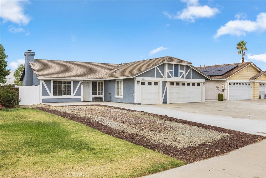 Welcome to 16815 Baltic Court in Moreno Valley! This adorable single-story home offers incredible value at $515,000, featuring 3 bedrooms, 2 bathrooms, and 1,212 sq. ft. of living space on a generous 6,970 sq. ft. lot. As you arrive, you’ll love the three-car garage and extended driveway—perfect for extra vehicles, toys, or even an RV trailer. Step inside to a bright and inviting living room with high ceilings and a cozy fireplace. Adjacent sits the open kitchen and dining area, complete with ample cabinetry, generous counter space, stainless steel appliances, and a large sliding door that leads to the backyard. This home features tile throughout, custom interior paint, crown molding, and custom window treatments. The hallway leads to all three bedrooms, including the spacious primary suite with its own private bathroom. All bedrooms include laminate flooring and ceiling fans for added comfort. You’ll also appreciate the convenience of indoor laundry, making day-to-day living even easier. The backyard offers a large turf area, perfect for low-maintenance outdoor enjoyment, pets, or entertaining. Located in the quiet south end of Moreno Valley, this home is turnkey, move-in ready, and an excellent choice for first-time buyers, downsizers, or anyone looking for a charming single-level home in a peaceful neighborhood.