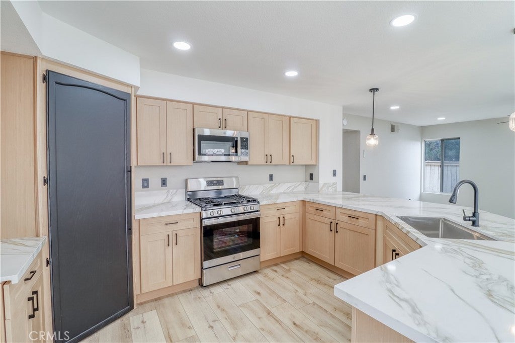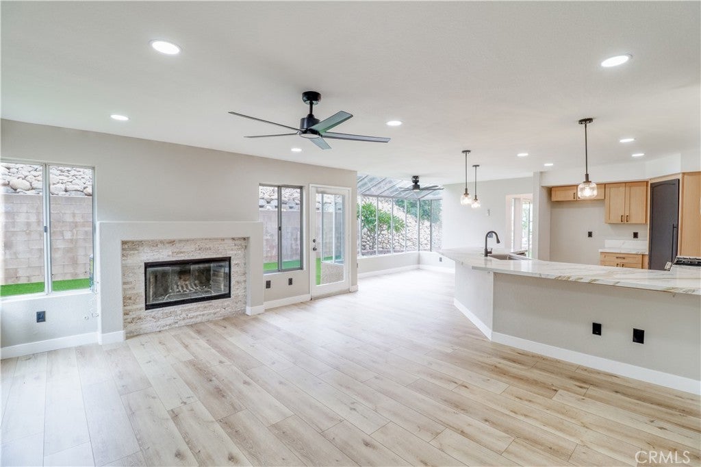 Welcome to 28950 Clear Spring Lane, a beautifully remodeled East Highland Ranch home with 5 bedrooms, 3 bathrooms, and stunning mountain views. This upgraded gem offers a sun-filled, sunken formal living room with large windows, a beautifully refaced fireplace, and a connected formal dining area. The fully remodeled kitchen is an entertainer’s dream, featuring quartz countertops, a breakfast bar, upgraded appliances, and generous workspace. The main level showcases luxury vinyl flooring throughout and includes a downstairs bedroom and full bath. Ideal for guests, multigenerational living, or a home office. The spacious family room features a beautifully refaced fireplace, adding warmth and charm to the heart of the home. Upstairs, the primary suite offers a luxurious double-faced fireplace that accents both the bedroom and the primary bathroom. You’ll also find a newly tiled primary walk in shower with a new glass door, updated flooring in all bathrooms, and fresh interior paint throughout. Step outside to a serene backyard with artificial turf, perfect for relaxing and soaking in the mountain scenery. Residents of East Highland Ranch enjoy a range of community amenities, including a sparkling pool, clubhouse, parks, walking trails, and a peaceful lake just moments away. This home is truly turnkey and ready for its next chapter. Don’t miss your chance, schedule a showing today!