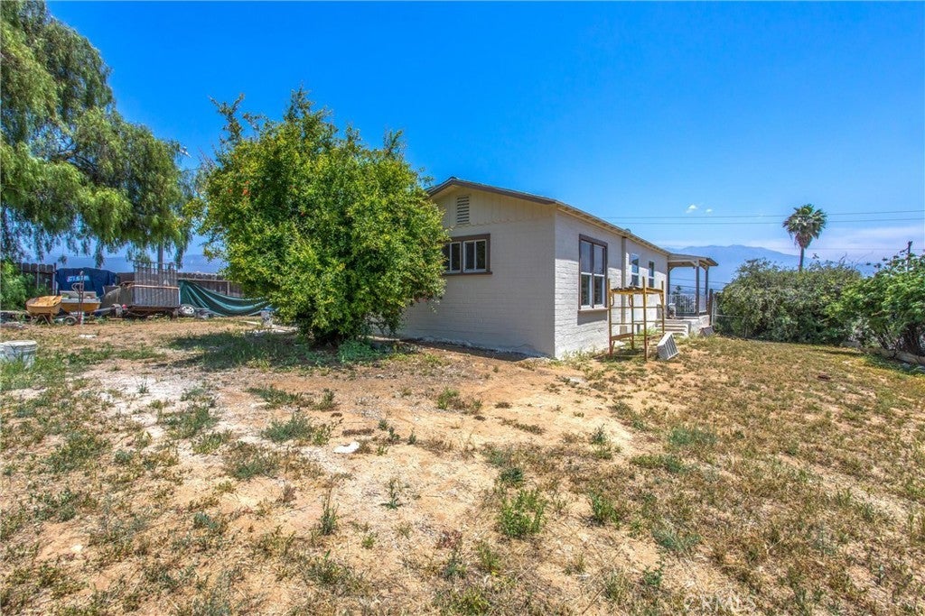 Home sits at top of small hill overlooking the valley with 180 degree views from front large porch . . . . . You can see all the way towards Oak Glen from the front porch . . . . . Home has easy access to 10 Fwy about less than five minutes away . . . . . Conveniently located to several fast food restaurants, grocery shopping, & fine restaurants . . . . . Home has new interior & exterior painting, updated/remodeled bath. . . . . Home offers 3 bedrooms, 2 baths, and large living room & spacious kitchen & dining room . . . . . Home has new wood laminate flooring & separate large two car garage . . . . . The large lot over 1/4 acre presents various possibilities as an ADU-additional dwelling unit, possibly keep a horse, grow goats, sheep, or chickens.