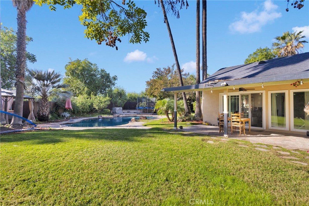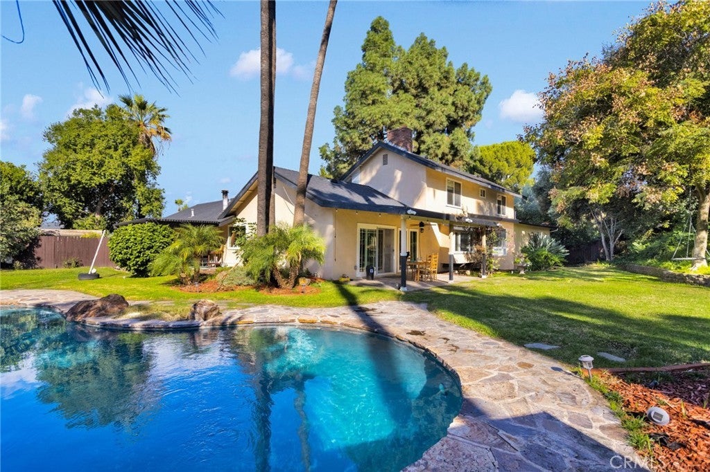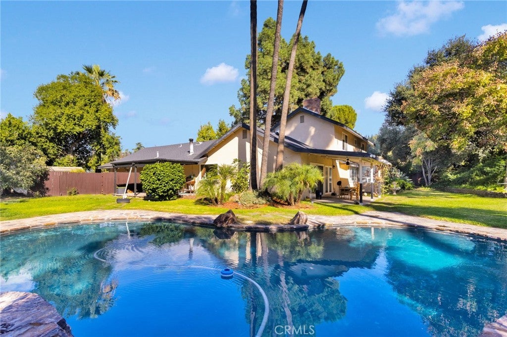 Spacious 5-bedroom, 3-bath home located in the desirable Canyon Crest area of Riverside. This property sits on a half-acre lot and features a private backyard with a custom pool, separate spa, mature landscaping, fruit trees, and multiple outdoor living spaces including a covered patio and a newly treated and painted lattice patio. The home offers a welcoming double-door entry, a custom iron entry gate featuring the Riverside bell, and an open living room with abundant natural light. Interior upgrades include engineered wood flooring and a redone fireplace with an added mantle, offering both gas and wood-burning options. The large lot provides an ample driveway space, and built-in hooks designed for seasonal exterior lighting. Additional features include open green space, privacy, and room for outdoor entertainment. Conveniently located near Canyon Crest Towne Centre, parks, UCR, schools, and major commute routes. A rare opportunity to own a half-acre lot with a pool, spa, and RV parking in one of Riverside’s most established neighborhoods.