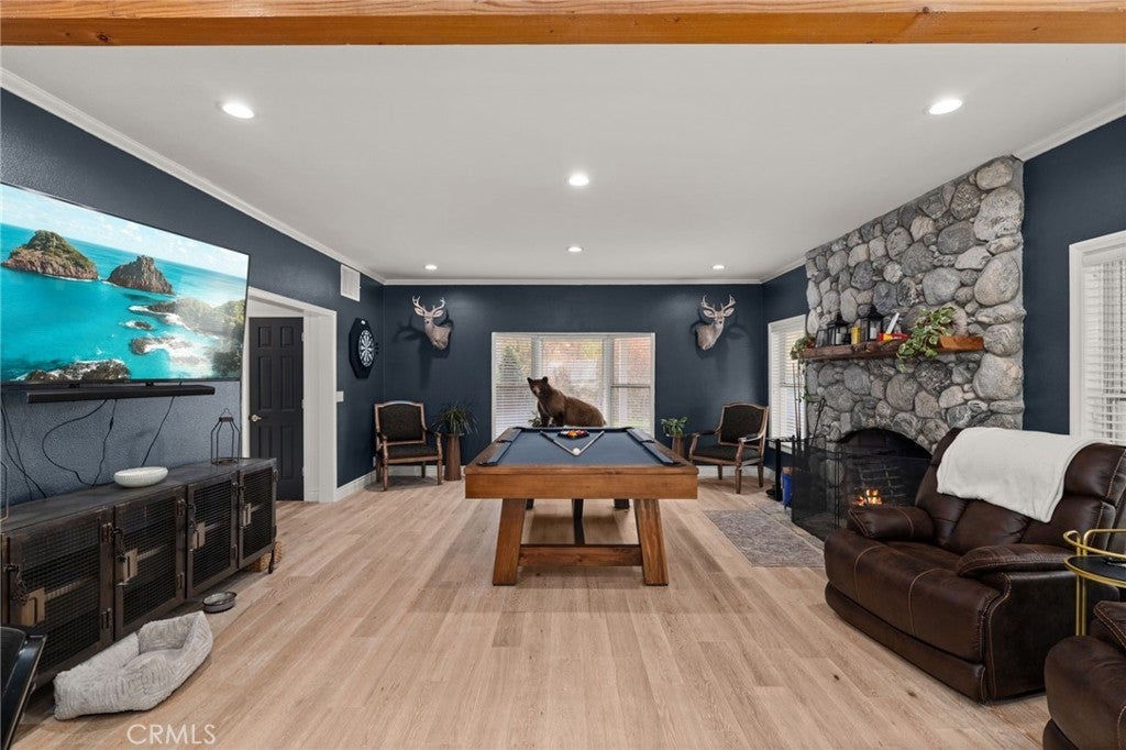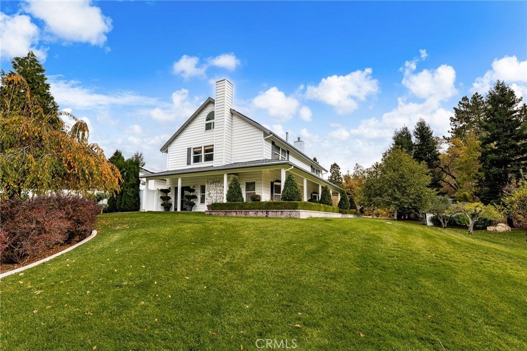 Set among towering trees with sweeping mountain views, this stunning Oak Glen retreat offers the beauty of all four seasons. Expertly crafted and thoughtfully designed, the home showcases exceptional workmanship inside and out. Lush landscaping, rolling lawns, and mature trees surround the property, creating a tranquil and picturesque setting. The wraparound porch provides the perfect place to relax and enjoy the fresh mountain air. Inside, the home immediately feels warm and inviting, featuring custom woodwork and ample built-in storage. The family room includes a wood-burning fireplace, and the kitchen is a chef’s dream with premium stainless steel appliances and high-quality finishes. The adjoining family room opens to the kitchen, making the space ideal for entertaining. Upstairs, the primary suite offers its own retreat and private study. The third floor includes additional guest space and a charming bathroom with a classic freestanding tub and incredible mountain views. Every window captures beautiful scenery—Spruce, Sequoias, Aspens, Maples, Dogwoods—and a variety of apple trees. Offering five bedrooms plus a den, four bathrooms, multiple fireplaces, and 4,528 sq ft on 3.27 acres, this home provides space, privacy, and serenity. It includes two Lennox A/C units and a fully updated whole-house generator, along with a generous three-car garage, two shares of Oak Glen water, and a private well. Conveniently close to Loma Linda and Redlands Community Hospital, this property embodies true Oak Glen luxury living.