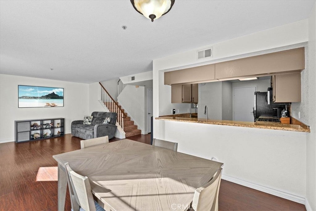 Welcome to your Santa Fe Springs dream – a beautiful two-story townhome that feels more like a single-family home without the headaches! Step inside this bright and airy 1,514 sq ft townhome and instantly feel at home. With a private entrance, direct-access 2-car garage complete with an EV charger already installed, you'll enjoy the perfect blend of low-maintenance vibes and real space to spread out. Three spacious bedrooms, 2.5 baths, and a layout that flows just right. Downstairs is where the magic happens: gleaming laminate floors, a big open living room with cozy fireplace, separate dining area, and sliding doors that open to your oversized private patio – perfect for morning coffee or weekend barbecues. Head upstairs on the plush carpeted staircase to all three bedrooms. The two guest rooms are generously sized with mirrored wardrobes and big closets, sharing a spotless full bath with shower-over-tub. Then there’s the primary suite you’ll never want to leave: huge walk-in closet, dual-sink vanity with granite countertop, a deep soaking tub tucked in the corner for soaking the day away, and a separate walk-in shower. Pure relaxation. The community adds that extra touch: sparkling pool, relaxing spa, and well-kept grounds – all covered by a low HOA. You're just minutes from Lakeview Park, Stonewood Center, Starbucks, great eateries, the 605 freeway, and all the conveniences that make life simple. Priced to move and ready for you – complete with an EV charger for ultimate modern convenience. Homes this clean, updated, and well-located fly off the market in Santa Fe Springs. See it. Love it. Call TODAY!
