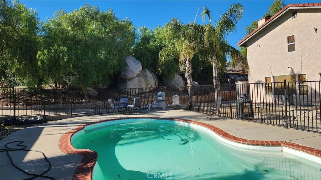 Looking for a big home with a big lot a Swimming Pool and a spectacular view ??? Congratulations you found it!!! But there is much more... What a great location with over an acre of land and the home boasts about 3,437 sq.ft. of living space. Low Tax and no HOA. Double door main entry as you walk into the welcoming foyer. Living room with 20 foot high ceilings and oversized window that allows plenty of natural lighting. This home has 4 Bedroom with the possibility of converting to 7 rooms or more. One bedroom and full bathroom are located downstairs. There is a huge bonus room/game room big enough to convert to 2 additional bedrooms. The primary bedroom is also very spacious and has a retreat area. Primary bathroom with jetted jacuzzi tub to relax. There is a mixture of tile floors and carpet throughout the home. Elegant circular staircase with wooden railing. Two Fireplaces, one in the Living Room and the other in the Family Room. Very spacious kitchen with lots of cabinets and plenty of counter space. Formal dining room. Big laundry room downstairs with storage cabinets. 3 Car Garage side by side with automatic openers. Over 1 Acre of land with dozens of mature and producing fruit and citrus trees; Oranges, Tangerines, Lemons, Figs, and more. Plenty of room for RV's, boats trucks, trailers and any other toys you may have. There is a large permitted carport for up to 8 cars; currently being used as a shop & storage area. Beautiful views of the valley, Lake Perris Dam, Big Bear and more. Very desirable location in a rural setting, yet close to schools, shopping centers, medical center, train station and very, yes very quick access to the freeway. This is a great home if you're looking to upgrade and have tranquility all around you. You won't be disappointed, come and take a look and make it yours.