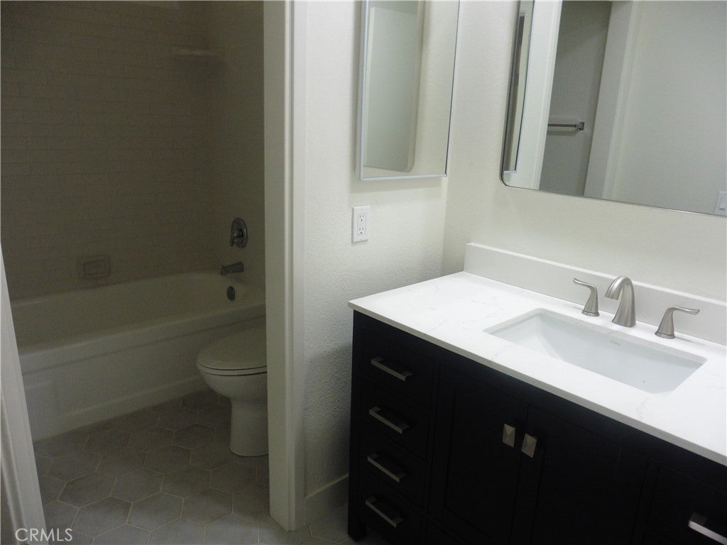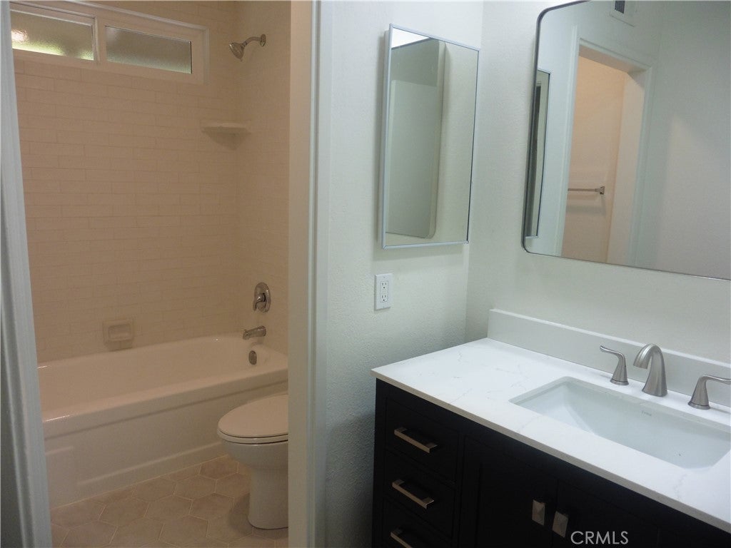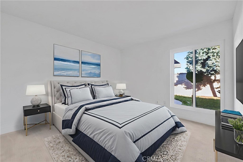 Welcome to the charming 3-bedroom, single-story home nested at the end of a peaceful cul-de-sac in a desirable neighborhood across the street from the sought after POLY HIGH SCHOOL. MOVE IN READY. Just newly remodeled and updated. Kitchen has all new cabinets, quartz counters and tile floor and stainless and black appliances. Both bathrooms also have new cabinets, quartz counters and tile floors. Entire home has new carpeting and paint. This unit is very light and airy with all new energy efficient and easy opening Sliding Glass doors in the Master Bedroom, Family Room and Living Room. All windows have also been replaced with new energy efficient ones. The attached double car garage offers a laundry area and direct access to the kitchen. On the exterior this unit has one of the nicer yards with patios and landscaping off both the Dining Room and Master Bedroom that have just been seeded and barked. The front courtyard has a small new sodded lawn and flower planters making for a nice entryway and area off the living room for watching or enjoying the outdoors. The community offers a pool just at the end of the block along with tennis court and RV storage.