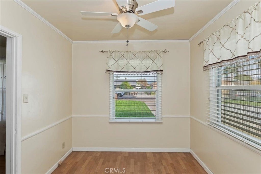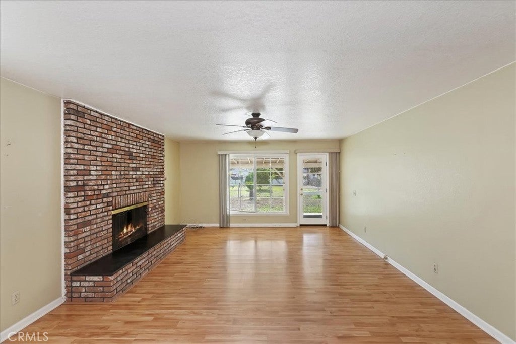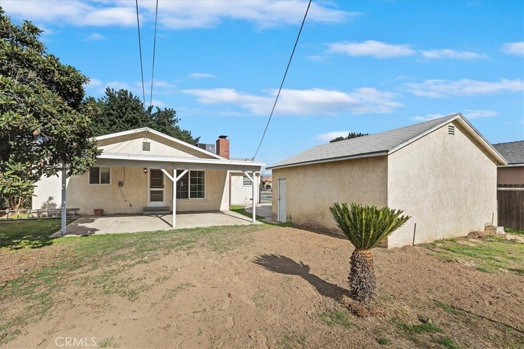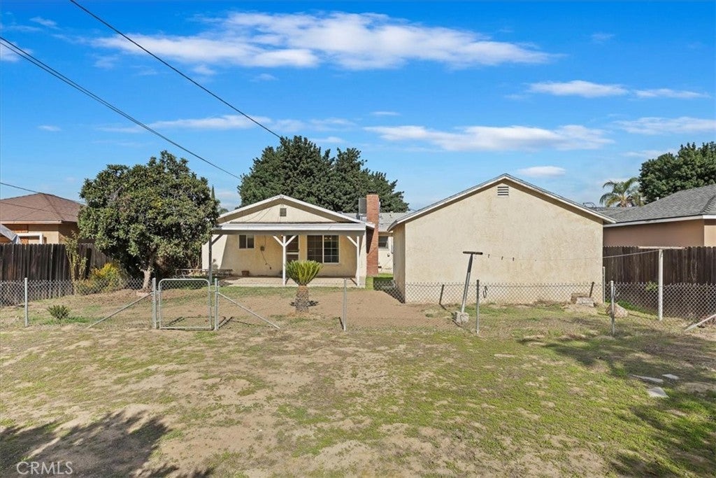 This charming single-level home features 4 bedrooms and 2 updated bathrooms on an expansive lot, offering both comfort and exciting potential. The spacious family room with a cozy fireplace flows into a bright kitchen complete with a welcoming breakfast nook. Additional conveniences include an inside laundry area and double-pane windows for improved efficiency. The home sits on a large lot, offering a covered patio perfect for outdoor dining, mature fruit trees, and plenty of room for possibilities such as a pool or an ADU. Fresh new sod enhances the curb appeal of the front yard. A long gated driveway leads to a 2-car garage set behind the gate, providing ample parking and added privacy. Close to schools and freeway access, this home blends convenience, charm, and opportunity.