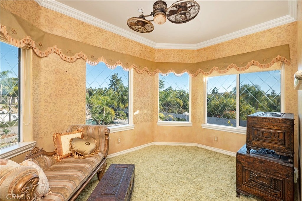 • Interior FeaturesBreakfast Bar, Built-in Features, Balcony, Breakfast Area, Ceiling Fan(s), Crown Molding, Separate/Formal Dining Room, Granite Counters, High Ceilings, Pantry, Recessed Lighting, Storage, Two Story Ceilings, Bedroom on Main Level, Dressing Area, Entrance Foyer, Block Walls, Dry Bar, Intercom, Multiple Staircases, Wired for Sound