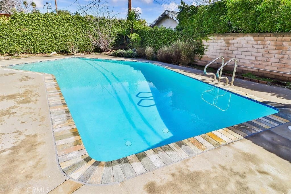Welcome to this inviting single-story home in a desirable Simi Valley neighborhood, offering 3 bedrooms and 2 bathrooms in a warm and functional layout. The spacious living room features a stone-accented fireplace and direct access to the backyard, while the adjacent dining area provides the perfect setting for gatherings and everyday meals. A bright, white kitchen offers ample cabinetry, generous counter space, and a convenient pass-through counter for easy serving. Step outside to enjoy a private backyard complete with a patio, grassy area, and a securely fenced swimming pool ideal for warm California days. The primary bedroom includes its own full bathroom and a large closet, while the additional bedrooms share a well-maintained hall bath with a tub-and-shower combo, complemented by extra hallway storage. An attached two-car garage with laundry hookups adds convenience and practicality. Full of charm and comfort, this home is ready to welcome its next owners.