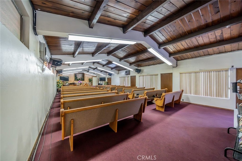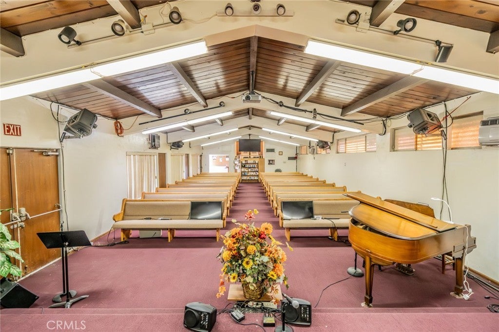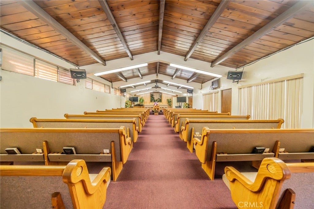Well-maintained commercial specialty property currently operated as a church, situated on a prominent corner lot within an established residential neighborhood. The property features a single-story building with multiple entrances, flexible interior spaces and on-site parking, offering functionality for assembly and community-oriented uses. The site includes a large open grass area, providing additional outdoor space or future expansion potential (subject to zoning and city approvals). The building layout allows for adaptable use, with perimeter rooms suitable for offices, classrooms or meeting areas. Located along a well-traveled street with strong neighborhood visibility and convenient access to surrounding residential communities. The property benefits from a generous lot size, clear site lines and proximity to local amenities. Ideal for religious, educational, community, or institutional use. Potential alternate uses may be considered subject to buyer verification and municipal approval. Aerial views illustrate the property footprint, parking configuration and surrounding area.