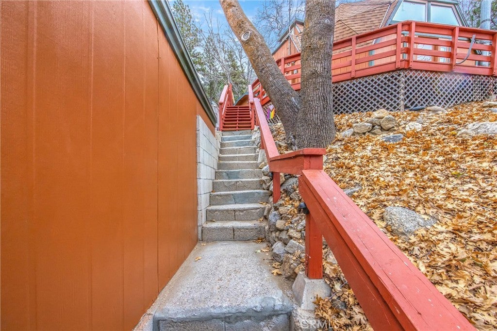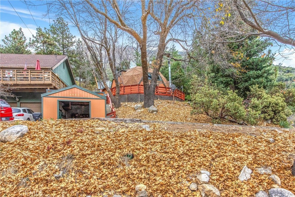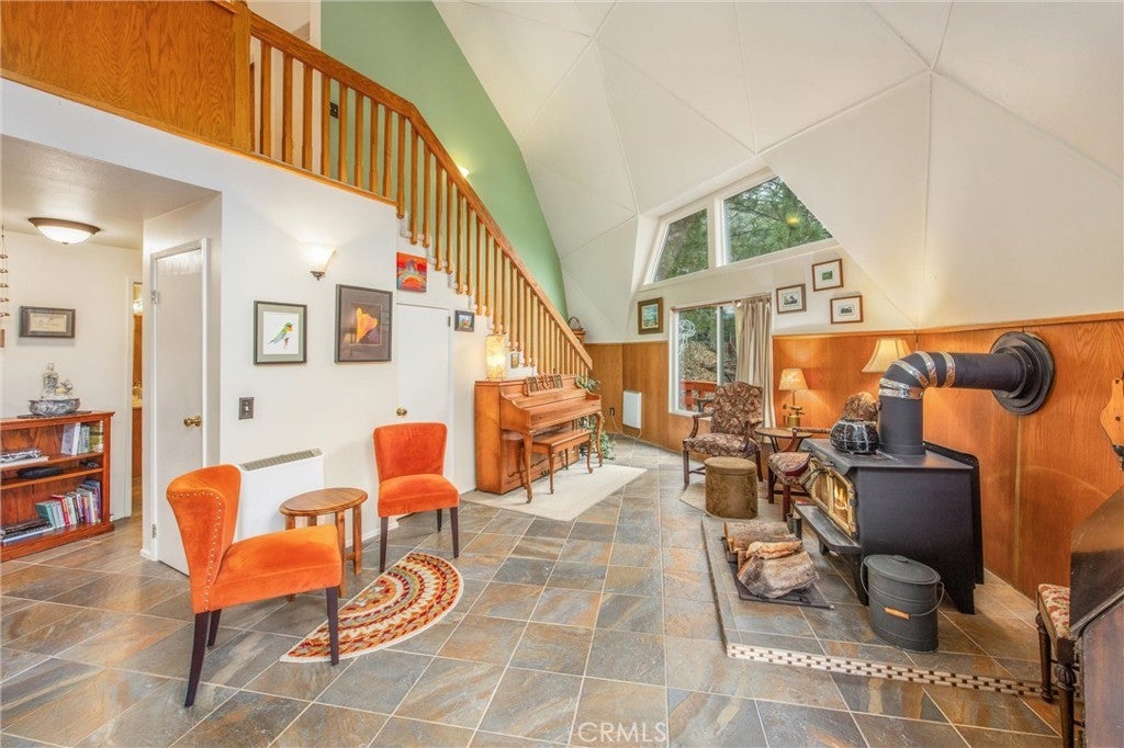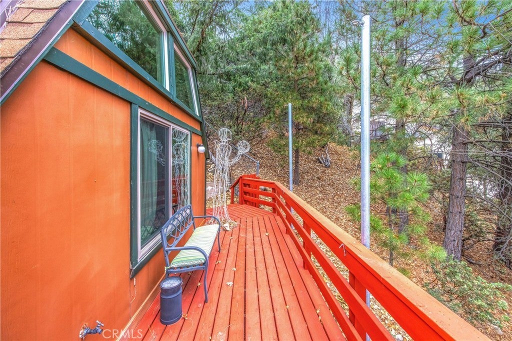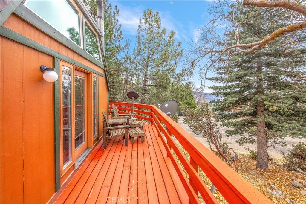 Welcome to your San Bernardino Mountain sanctuary, where architectural innovation meets natural beauty in the heart of Angelus Oaks. This thoughtfully designed 1,420 square feet home has been lovingly maintained by the same family for 25 years, and now it's ready to welcome its next chapter of memories. Located at an elevation of 5,800 feet within the San Bernardino National Forest, this unique residence offers the perfect blend of privacy, comfort, and access to year-round mountain adventures. The home's distinctive design features vaulted ceilings that create an open, airy atmosphere while maximizing natural light. Every corner has been crafted for comfort and livability, making this a true turnkey mountain retreat. The main level welcomes you with a thoughtful floor plan that includes one bedroom and a full bathroom with an integrated laundry area for ultimate convenience. The heart of the home flows seamlessly into living spaces designed for both everyday comfort and entertaining. Upstairs, the primary suite provides a private retreat with its own bathroom, offering separation and tranquility after a day of mountain exploration. Adding to the home's versatility, a bonus room currently serves as an office, perfect for remote work with a view or as a creative studio, hobby space, or third bedroom. The wrap-around deck has been recently upgraded with new wooden steps, creating the ideal setting for morning coffee surrounded by towering pines, al fresco dining under the stars, or simply breathing in the crisp mountain air while watching wildlife wander past. Comfort through all seasons is ensured with three strategically placed wall heaters complementing a cozy wood-burning stove that becomes the heart of winter gatherings. Recent upgrades include newer windows that enhance energy efficiency while framing forest views, and upgraded water pressure throughout the home. The property comes with peace of mind: a termite inspection has been completed with the seller providing termite clearance, and the septic system has been freshly pumped and will be certified. This charming unincorporated community offers the serenity of forest living with convenient access to world-class recreation. Just 30-45 minutes from Big Bear Lake, residents enjoy easy access to skiing at Snow Summit and Bear Mountain, world-class mountain biking, fishing, boating, and year-round festivals and events.