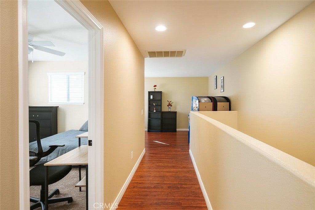 Welcome home to space, comfort, and community in this beautifully designed 5-bedroom, 3-bath residence tucked away on a quiet cul-de-sac in commuter-friendly Southwest Hesperia. Ideally located just minutes from the I-15 Freeway. Thoughtfully positioned within walking distance to the elementary, middle, and high school, this home offers a rare level of convenience for busy, growing families. The main level features a private bedroom, full bathroom, and dedicated office large enough to be the 6th bedroom, ideal for multigenerational living, guests, or working from home. Enjoy an open-concept kitchen with granite countertops that flows seamlessly into a spacious family room perfect for everyday living and gathering. A separate, oversized living room adds flexibility for entertaining or formal space. Upstairs, you’ll find four additional bedrooms and a massive loft, ideal for a playroom, media room, or teen retreat. The generous primary suite is a true sanctuary, complete with an ensuite bath with dual sinks and dual walk-in closets. Step outside to a large, beautiful backyard with a playground area designed for entertaining, weekend barbecues, and years of memories. With its warm, inviting atmosphere, smart layout, and unbeatable school proximity, this home delivers the space and lifestyle today’s families are searching for. Homes with this much room, walkability, and a cul-de-sac with privacy are rare, this one truly checks every box.