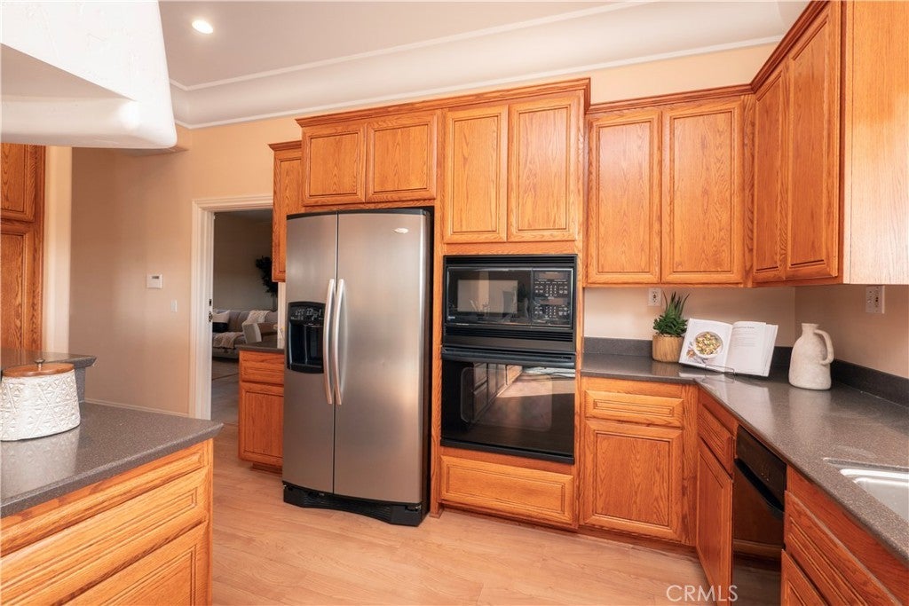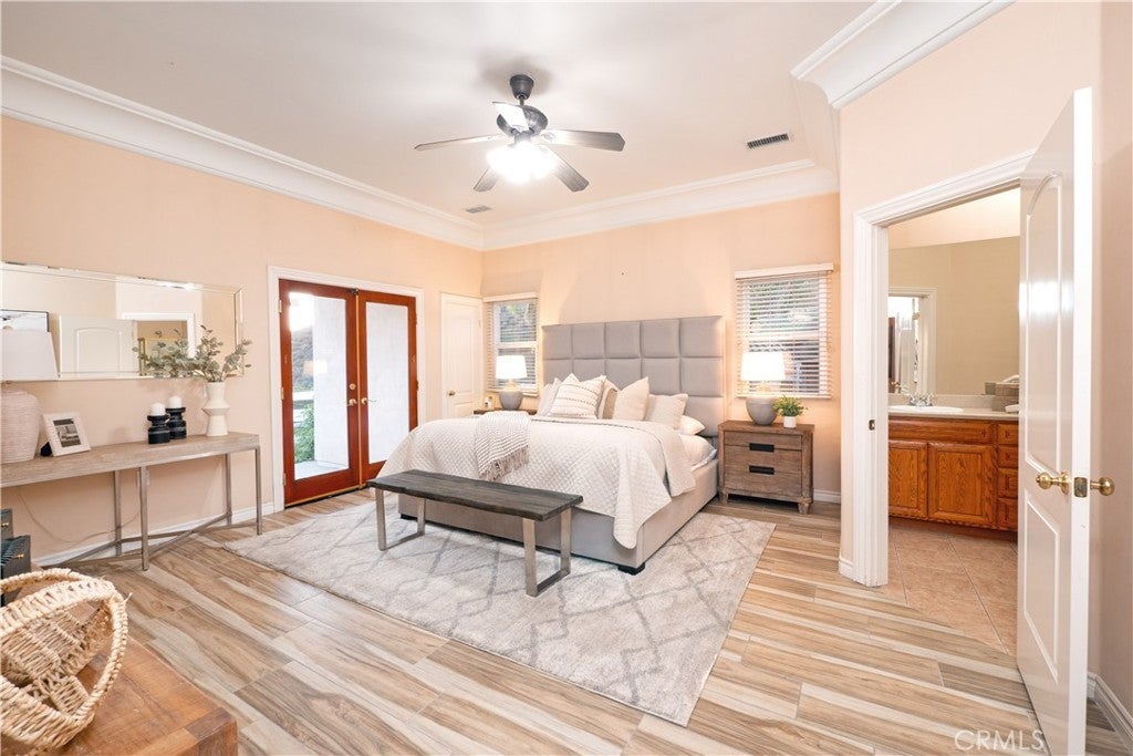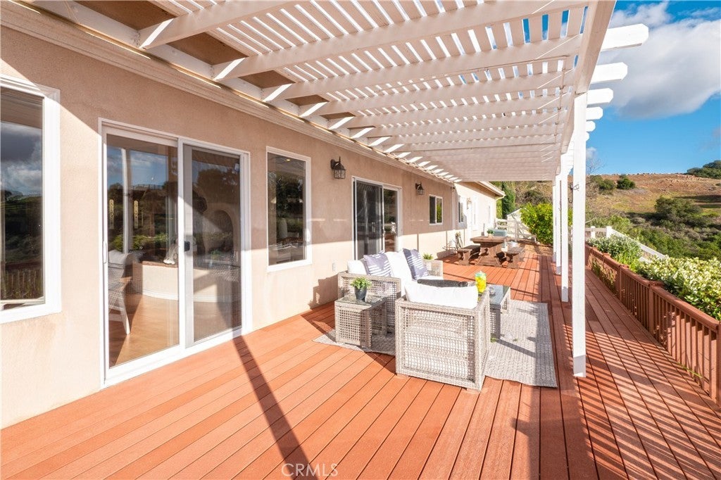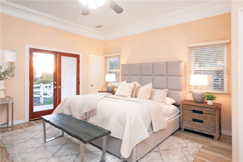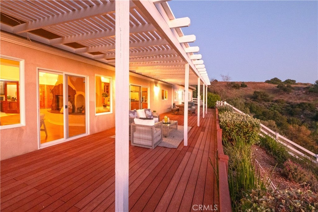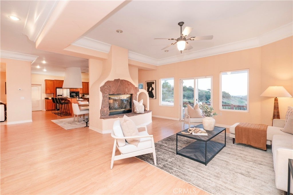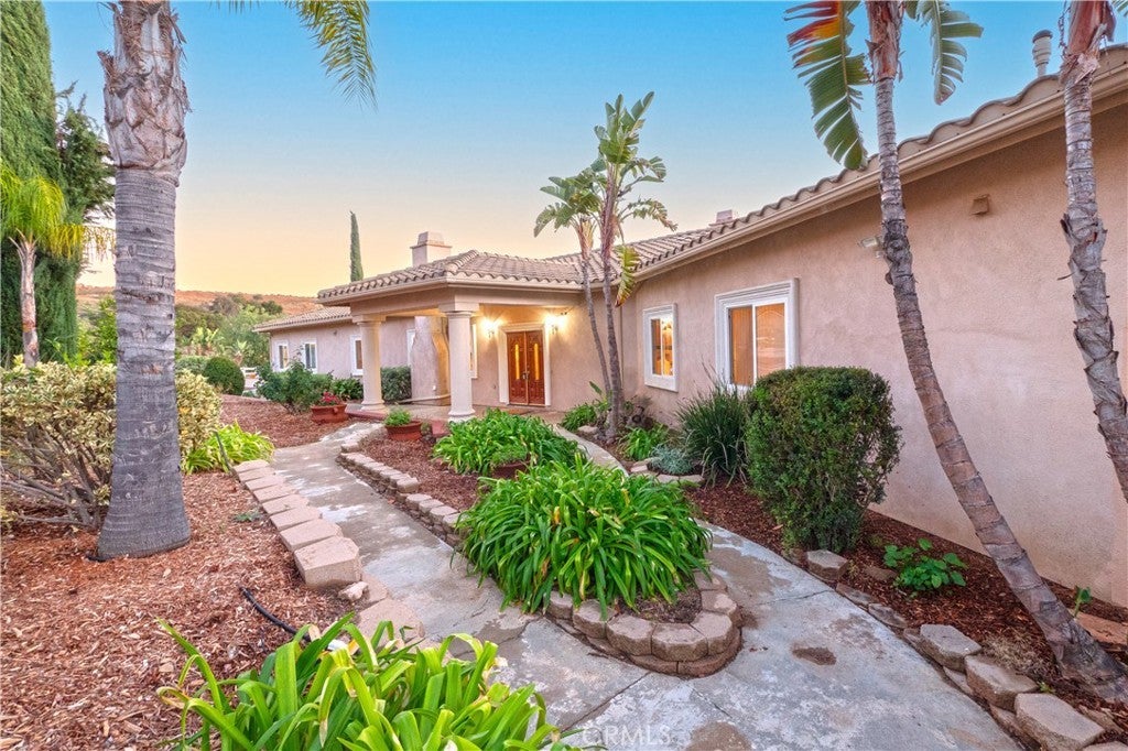 Welcome to your dream retreat situated on the scenic Santa Rosa Plateau in La Cresta. This stunning custom single-family residence sits on a sprawling 5 acre parcel, ensuring both privacy and tranquility while still enjoying the warmth of a close-knit community. Designed for comfortable, upscale living, this 3,317 sq ft home features an open floorplan, five spacious bedrooms, and three luxurious bathrooms — perfect for families of any size or those who love to entertain. Step into sophistication and charm with elegant 12-inch crown molding, high ceilings, and rich hardwood flooring throughout. The heart of the home is the expansive family and dining rooms, seamlessly connected by a dual fireplace that creates an inviting atmosphere for gatherings. An additional fireplace in the living room adds warmth and ambiance to your evenings. The gourmet kitchen will delight the home chef with Corian countertops, a center service island with breakfast bar and ample space for culinary creativity. Whether you’re preparing everyday meals or hosting festive celebrations, this kitchen is designed to inspire. Ideal for multi-generational living, the attached “Next Generation” unit provides comfort and independence. Complete with a full bathroom and a kitchenette, it is perfect for extended family or guests. Embrace the beautiful California outdoors from the expansive rear deck, offering breathtaking views of rolling hills and picturesque countryside. The primary suite features a private covered viewing deck, creating a personal sanctuary to enjoy sunrises, sunsets, and peaceful moments. The property includes a fenced area suitable for raising chickens or goats which can easily be converted for horses, making it a perfect fit for animal lovers or hobby farmers. Enjoy the bounty of your own land with a variety of mature, fruit-bearing trees such as peach, persimmon, apple, and fig. La Cresta is renowned for its vibrant social life and supportive family-centered community, yet the 5 acre parcel minimum ensures the ultimate in privacy and seclusion. Here, you have the freedom to relax, explore, and enjoy life at your own pace — all while remaining connected to neighbors and local activities. This extraordinary estate offers the rare combination of luxurious living, multi-generational flexibility, and rural charm. Experience the best of Southern California in a home that truly has it all — space, elegance, and a setting that welcomes both relaxation and adventure.