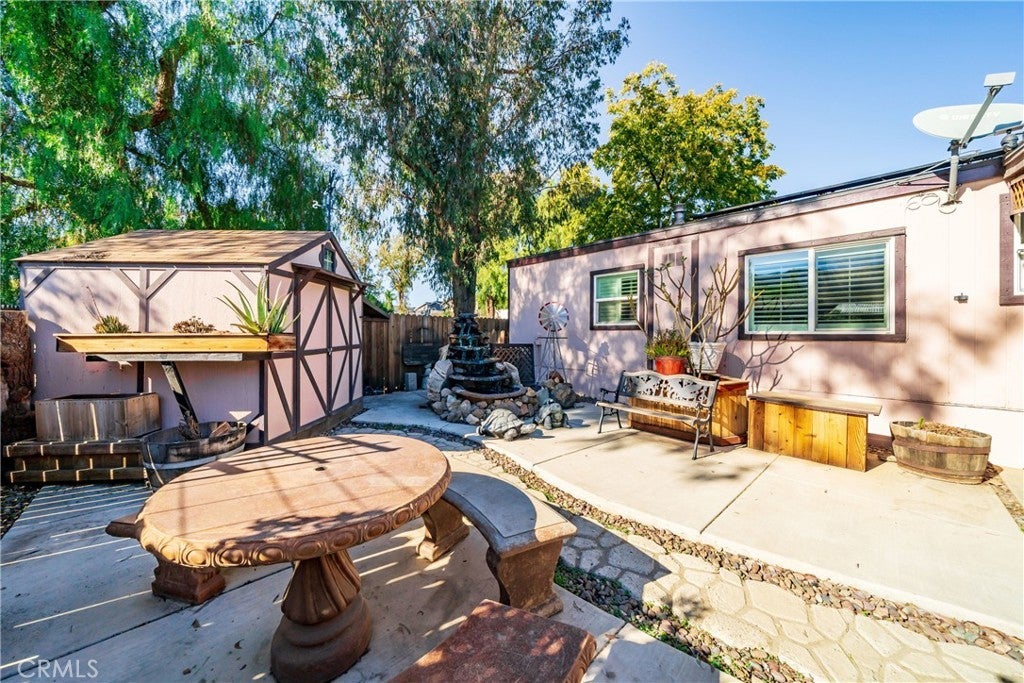 This 3-bedroom, 2-bath manufactured home is on a permanent foundation and offers a practical layout with thoughtful updates inside and out. The updated kitchen opens to the main living area, and new flooring has been installed in the laundry room and guest bathroom. A covered patio extends the living space outdoors, overlooking a private backyard that backs directly to the tennis courts. Fountains highlight both the front and rear yards, paired with low-maintenance landscaping. The property includes a two-car garage with pull-through access to the covered backyard patio, plus two additional storage sheds. The roof was installed in 2018 (40-year warranty), and a paid-in-full 17-panel solar system keeps electric bills very low. Ask about the extended warranty through 2044. Other updates include dual pane windows, shutters, new tile at laundry and guest bath, fresh paint inside and out, and wood pest repairs completed. Enjoy west-facing views of the Cleveland National Forest and a quiet setting with no rear neighbors. Located in Butterfield Estates, residents have access to a pool, spa, tennis courts, clubhouse, greenbelts, and a walking trail. Golfing is nearby, along with shopping and dining at Tom’s Farms, The Shoppes at Sycamore Creek, Dos Lagos, and The Crossings. Served by award-winning schools in the Corona-Norco Unified School District. Low HOA dues @ $108/mo. and special assessments are $653/year.