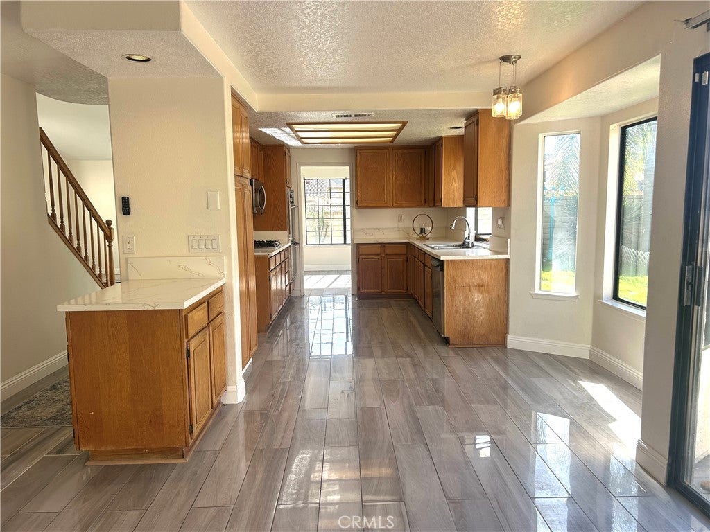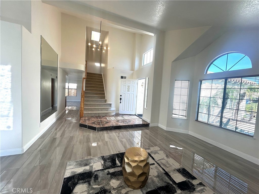 Located in the highly desirable Moreno Valley Ranch community. The open entryway welcomes you with abundant natural light, fresh interior paint, tile flooring, and updated light fixtures. A cozy fireplace anchors the family room, which opens to the backyard through sliding doors—perfect for entertaining or relaxing. The open-concept kitchen with new quartz countertops and ample cabinetry. A full bedroom and bathroom in the first floor. Upstairs, you’ll find 3 spacious bedrooms and two big bathrooms. As part of the Moreno Valley Ranch HOA, residents enjoy resort-style amenities including a sparkling pool and spa, fitness center, clubhouse, lake access, parks, BBQ areas, and scenic walking trails.