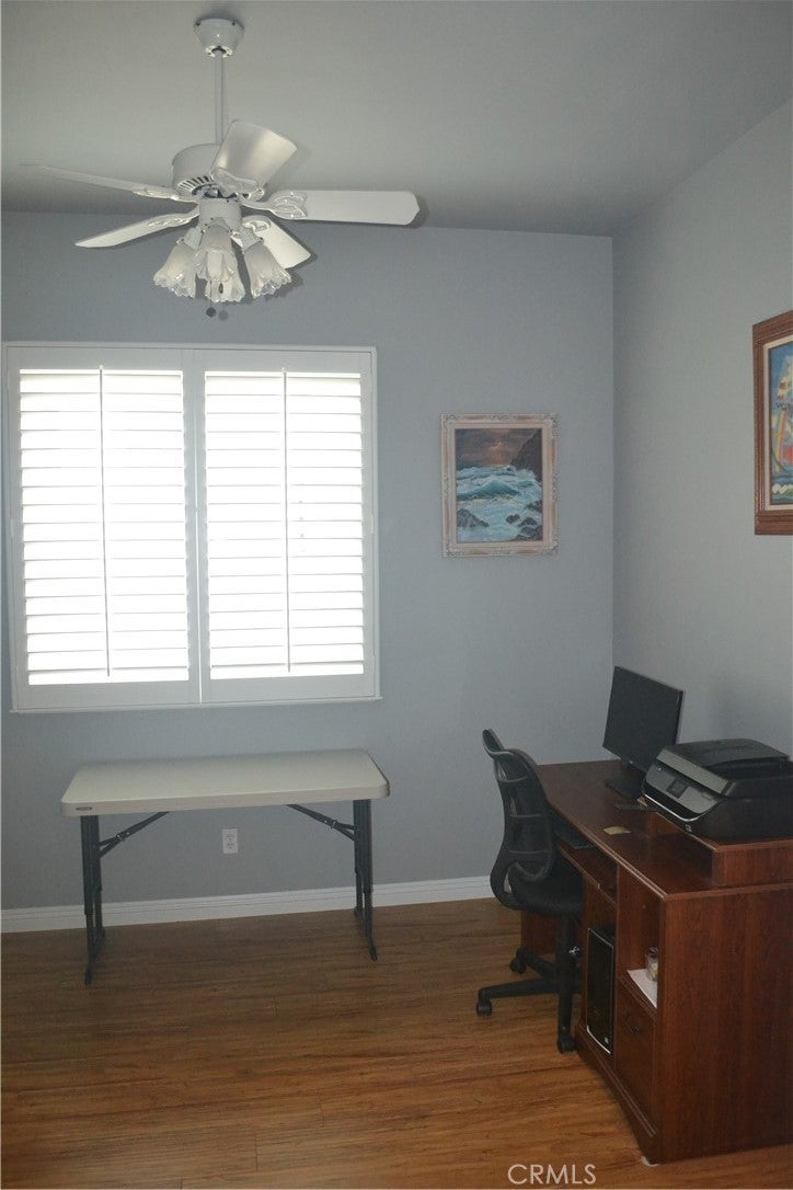 Beautiful Trillion Model home in Solera on the Golf Course featuring 1,687 square foot of living space with two bedrooms and an office, great room with fireplace that is open to beautiful kitchen with granite counter tops and a limestone back splash. The interior of the home including the interior of the garage has just been painted. The ceilings are 9' high and windows are large giving much natural light. Most windows have plantation shutters. The utility room has washer and dryer hookups and a sink with granite counter top. This property looks like a model home with no wear and tear noticeable. Snow capped mountains in the back ground are majestic. The private back yard is on the golf course giving privacy and a peaceful environment. Solera is an active senior planned community that is beautifully maintained, there is a club house with activity rooms, a gym, pool and endless activities available to residents.