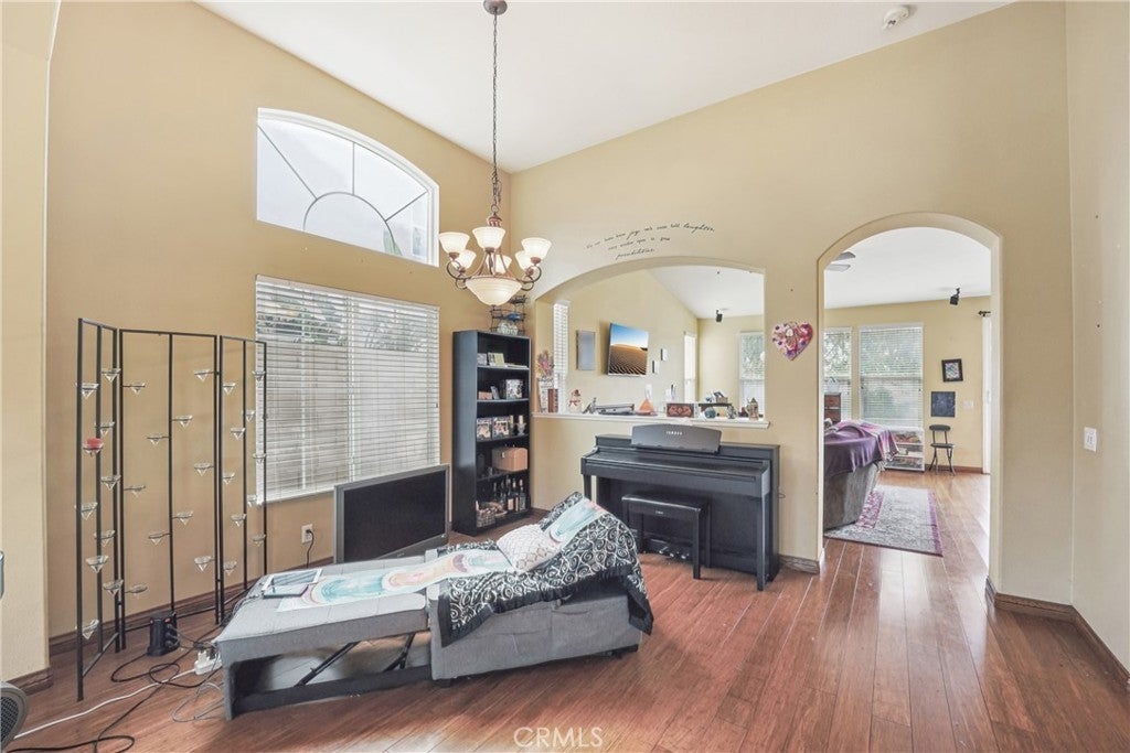 Beautiful 3-bedroom home with a spacious ensuite off the master bedroom with 2 bathrooms, located in the highly desirable North Fontana community within the acclaimed Etiwanda School District. This beautifully maintained residence is part of the Harmony Addition by Centerstone Estates, recognized for its commitment to green living-and it comes with PAID OFF SOLAR. Step inside to find a formal living and dining area, a cozy family room with a fireplace and built-in surround sound wiring, and stylish hardwood floors throughout the entryway, living room, and kitchen. The gourmet kitchen features granite countertops, stainless steel appliances, and a convenient breakfast bar-perfect for everyday living and entertaining. Additional features include custom interior paint and lighting, ceiling fans in every bedroom and the family room, and a dedicated laundry room with a sink and extra cabinetry for ample storage. Enjoy the well- manicured front yard and a generous backyard ideal for outdoor dining, relaxation, and entertaining guests.