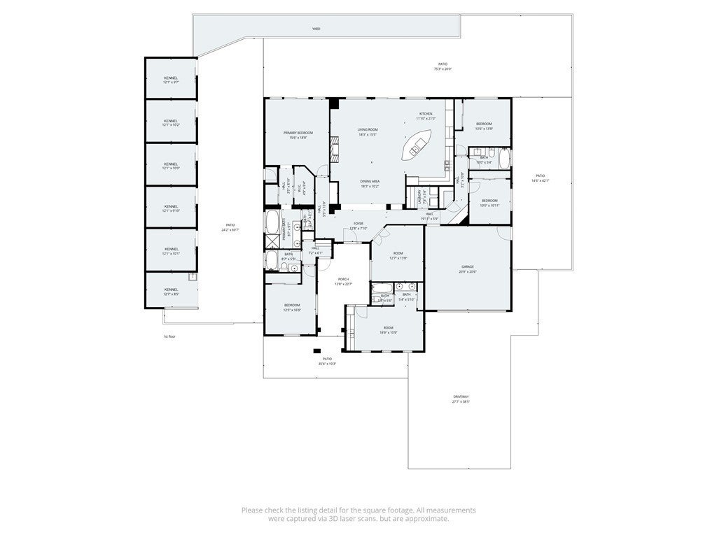 • Exterior FeaturesKennel, Rain Gutters