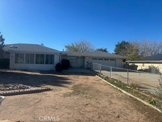 A house with great potential! good Hesperia area near Ranchero Road. 1232 Sq Feet and 18,000 sq. yard. BIG GARAGE!, Spacious Laundry room, good long spacious driveways! Good amount of cement front and back !! With some TLC this house is a gem! Central heating, front sunroom, 2 enclosed back patios.