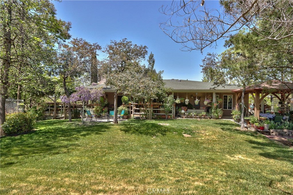 BEAUTIFUL PARK LIKE SETTING AT THE END OF THE CUL-DE-SAC . VERY PRIVATE WITH 19 YEAR OLD MATURE TREES. ORIGINAL OWNER!!!LOCATED IN LAKE RIVERSIDE ESTATES PRIVATE COMMUNITY WITH 55 ACRE LAKE AND PRIVATE AIRSTRIP.YOU WILL NOT FIND ANOTHER PROPERTY WITH THIS KIND OF LANDSCAPING AND FRUIT TREES. THIS HOME HAS A HUGE MASTER BEDROOM APPROX 432 FEET ALONG WITH A LIVING ROOM AND FAMILY ROOM APPROX SAME SIZE. TAX SAYS 3 BED 2 BATH BUT THERE IS A 400 SQUARE FOOT GAME ROOM THAT COULD BE 4TH BEDROOM. THE GARAGE IS APPROX 900 SQUARE FEET WITH 3 BAYS AND 9 FOOT DOORS COMPLETED WITH DRYWALL AND PAINTED. THE HOME HAS 3 DECKS AND ONE OF THEM HAS A OVERHANG THAT MAKES FOR AN ENTERTAINERS DELIGHT. THERE IS A 12X12 COVERED PERGOLA WITH A PLANTER AROUND 2 SIDES. THERE IS ALSO A CONCRETE PATIO OFF THE BACK OF THE HOUSE WITH A SLIDER TO THE MASTER BEDROOM.THERE ARE 1 APPLE TREES,3 POMEGRANATE TREES,2 FIG TREES, 1 DONUT PEACH,5 KINDS OF PLUM TREES,3 CHERRY TREES, 2 GRAPE VINES,1 ORANGE,1 LEMON AND 1 ALMOND TREE THERE IS APPROX 6000 SQUARE FEET OF GRASS WITH AUTOMATED SPRINKLERS AND ALL THE TREES ARE ON DRIP. THE PROPERTY IS 3.38 ACRES WITH APPROX 2.25 FENCED WHITE PVC ON THE STREET SIDE AND CHAIN LINK THE REST OF THE WAY. WITH 3 FRONT GATES 2 SWING AND 1 SLIDE. THE LANDSCAPING AND HARDSCAPING COST APPROX $200,000.00. THIS HOME HAS VERY HIGH END FLOORING WITH NATURAL SLATE TILE AND HIGH END PERGO XP. PLEASE CHECK VIRTUAL TOUR LINK