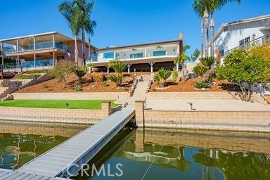 Waterfront "Paradise on East Bay Channel" in Canyon Lake. Enjoy this stunning waterfront location and views!!! Perfectly situated on a prime lot with 70 ft of frontage. You will experience breathtaking views of the mountains, boating, and wild life. Newly remodeled kitchen boasts granite counter tops, new cook top, dishwasher, newer wine fridge and a walk in pantry. Step thru the double door entry and take in the panoramic water views. The spacious great room features vaulted ceilings, crown molding, and tile thru out. A cozy wood burning fireplace in the family room with lots of natural sunlight coming thru the windows. Step outside to an expansive 800 sq ft deck with glass railing, seamlessly blending indoor and outdoor living. New ceiling fans on deck and in primary bedroom. The primary bedroom features shutters letting natural lite filter in along with a beautifully tiled walk in shower. A stylish vanity provides ample space and storage for daily use. This home is designed for both relaxation and entertainment featuring a private U-Dock with lift, allowing you to cruise the lake at a moments notice. Sea wall and terraced yard. The low maintenance yard ensures you have more time to enjoy the waterfront lifestyle. Additional upgrades include a new HVAC system, Professional Landscaping with Palm trees, and fresh paint. Whether you're hosting guests on your deck, enjoying lake views from your large windows, or out on the boat, this home delivers the ultimate lake experience. Flat driveway to park your boat or toys. Close to pickle ball courts, private lake for skiing and 18 hole SGA golf course.