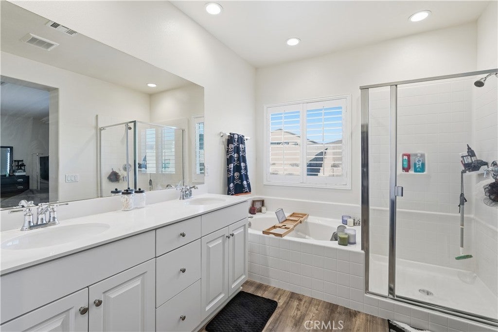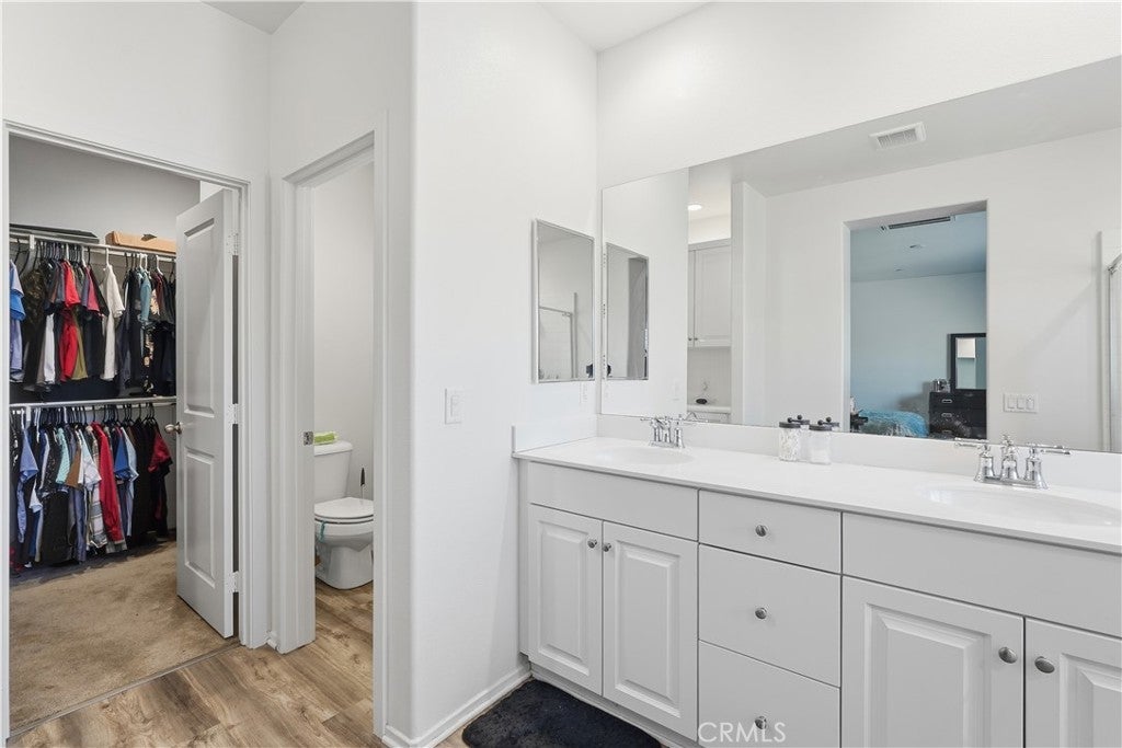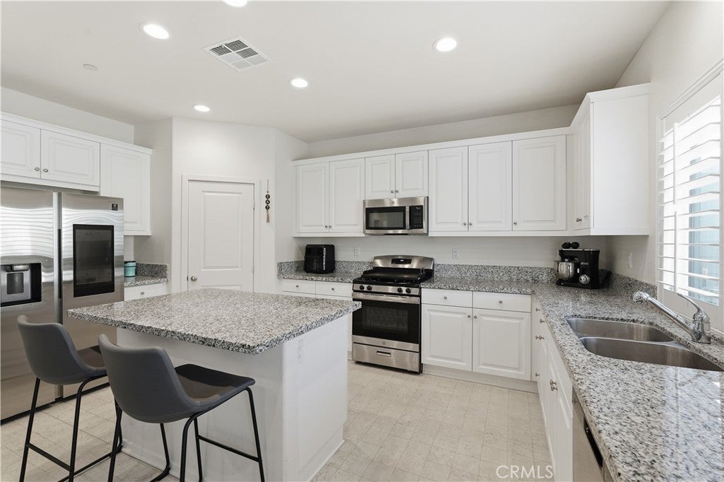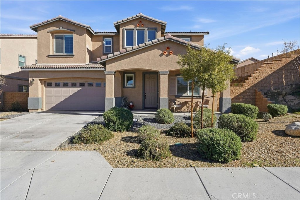 Welcome to this stunning newly built two-story modern home, offering space, style, and energy efficiency. Designed with tall ceilings throughout, the interior feels bright, airy, and impressively spacious. Vinyl wood flooring flows seamlessly through the home, complementing the contemporary design. The beautiful kitchen features a large center island with barstool seating—perfect for casual dining and entertaining. A full bedroom and bathroom are conveniently located downstairs, along with the laundry room, ideal for guests or multigenerational living. Sliding doors from the kitchen and dining area lead to a generously sized backyard, perfect for family gatherings and outdoor events. Upstairs, you’ll find four additional bedrooms and three more bathrooms, including a spacious primary suite complete with a luxurious walk-in closet and a his and hers bathroom. The home is equipped with solar, helping to reduce utility costs while adding long-term value. The home sits about 5 minutes from the 15 freeway, and perfectly located just minutes from Victorville’s major shopping centers, theaters, dining options, Victor Valley Mall, and excellent schools, this home offers both comfort and convenience. This exceptional property is ready for you and your family to make it your own.