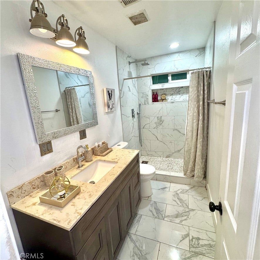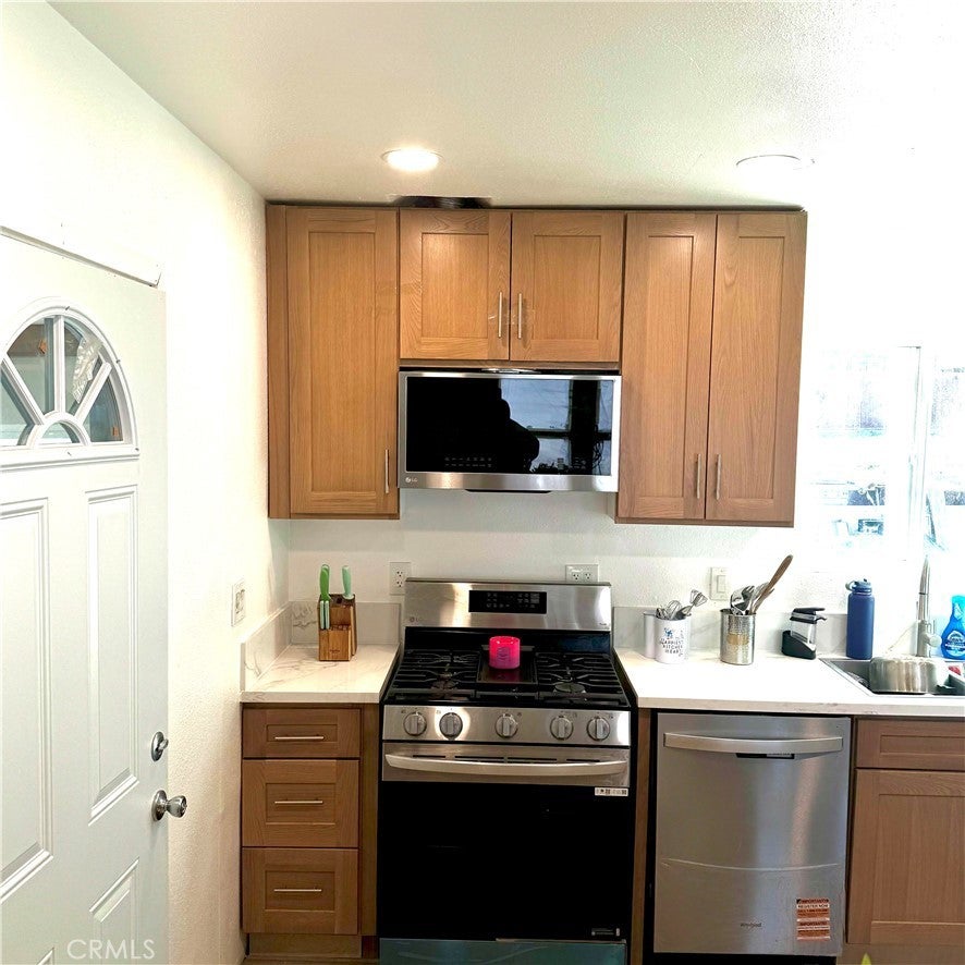 Welcome to this newly renovated home. It is a 3 bedroom 2 bath home. It is a single story home, with an open floor plan, gorgeous tile throughout the home. Modern kitchen with a lighted walk- in pantry. You have a beautiful kitchen island with quartz countertops throughout the kitchen. Appliances are are about a year old. The cabinets have self-closing doors. The rooms are spacious and have mirrored closet doors. You have a front porch area to add your patio furniture and with a nice, large yard area to have a beautiful garden. There is plenty of parking in the driveway to park 2-3 cars in addition to all the street parking that is available. The city streets are wide. The house has access to the backyard on both sides of the house. You can open one of the side gates and park your vehicles in the back. The backyard is huge, with a covered patio that has a built-in barbecue grill, counter and small faucet. There is a ceiling fan and a tv mount and tv setup. It’s the perfect place to host your parties and enjoy all your sports while barbecuing. Next to the patio cover is a large cemented patio area to put in your portable basketball court. There is a shed on the side of the house for all your storage. Next, you still have plenty of land to have your pets, possibly add an ADU (buyers to do their own research with the city), or start your small orchard or gardening projects. There are infinite possibilities for the space. You will enjoy this home where you can entertain all your family and friends. All the schools are nearby. It is next to a lot of eateries and prime shopping locations.