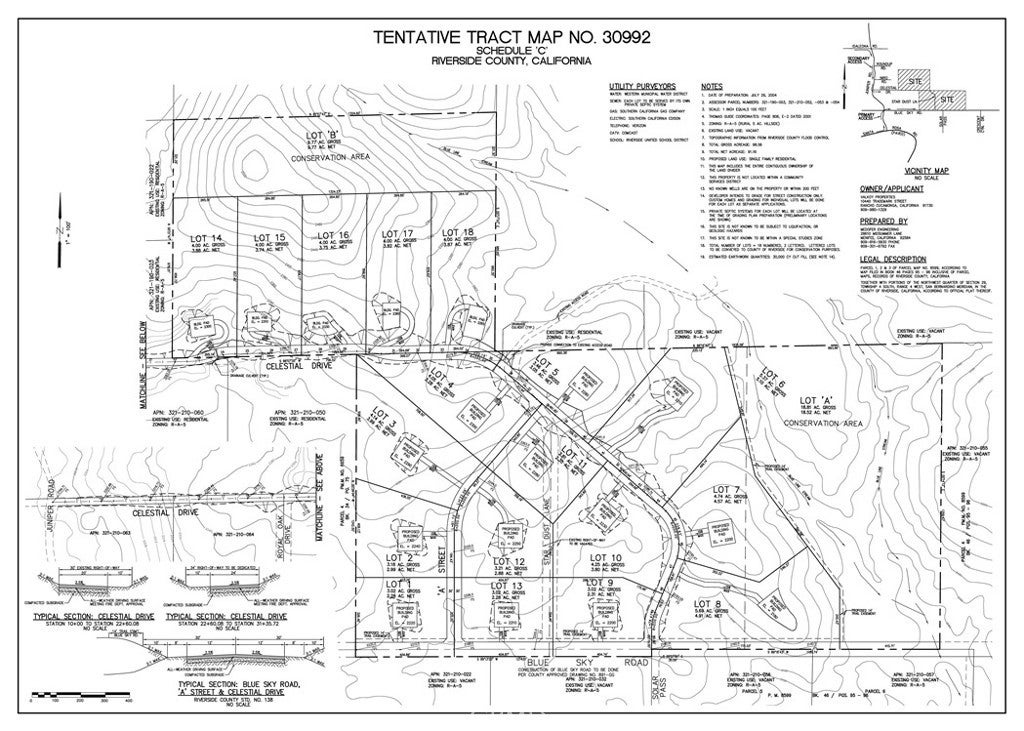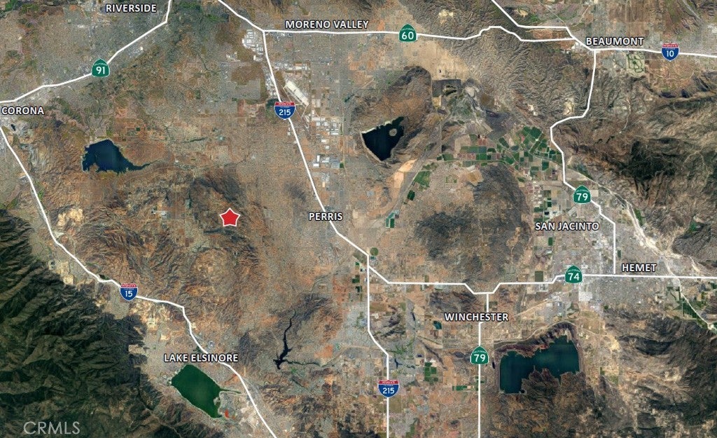 The subject property consists of four parcels totaling approximately 98 acres of land within the Lake Matthews area in Riverside County. Three of the four parcels have frontage on Blue Sky Road and form a rectangular shape measuring approximately 2,500 feet in width and 1,200 feet in length. The fourth parcel is connected to parcel #321-210-052 to its northwest via Celestial Drive. The property itself has mild topography on the frontage portion along Blue Sky Road and leads into hillside towards the northwestern most parcel. The area surrounding the property consists of mostly rural residential/large lot homes and some agricultural operations. The property lies approximately 4.5 miles from Highway 74 access which connects to the I-215 to the north and the I-15 to the south. MAJOR PRICE REDUCTION