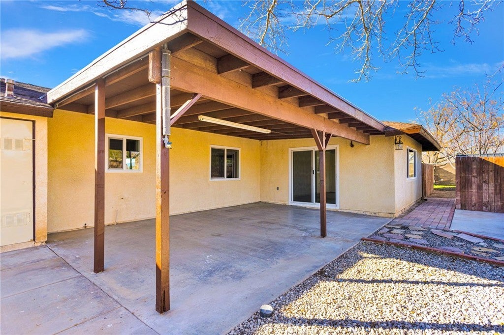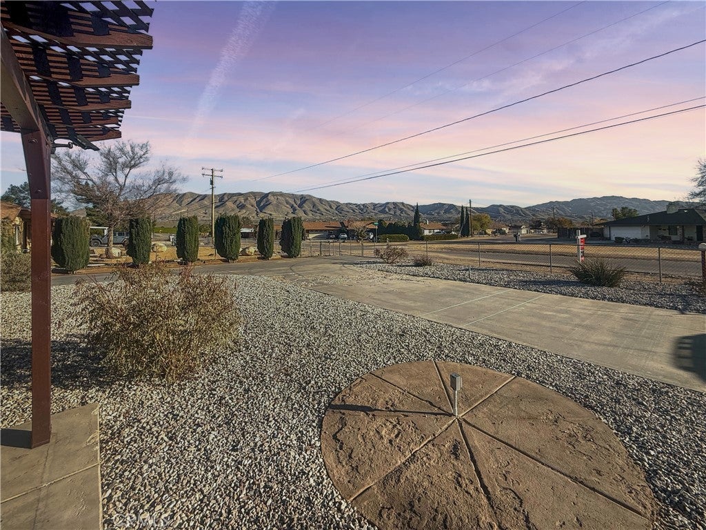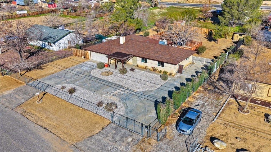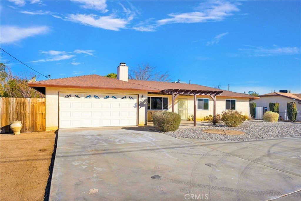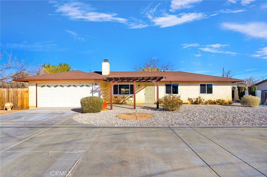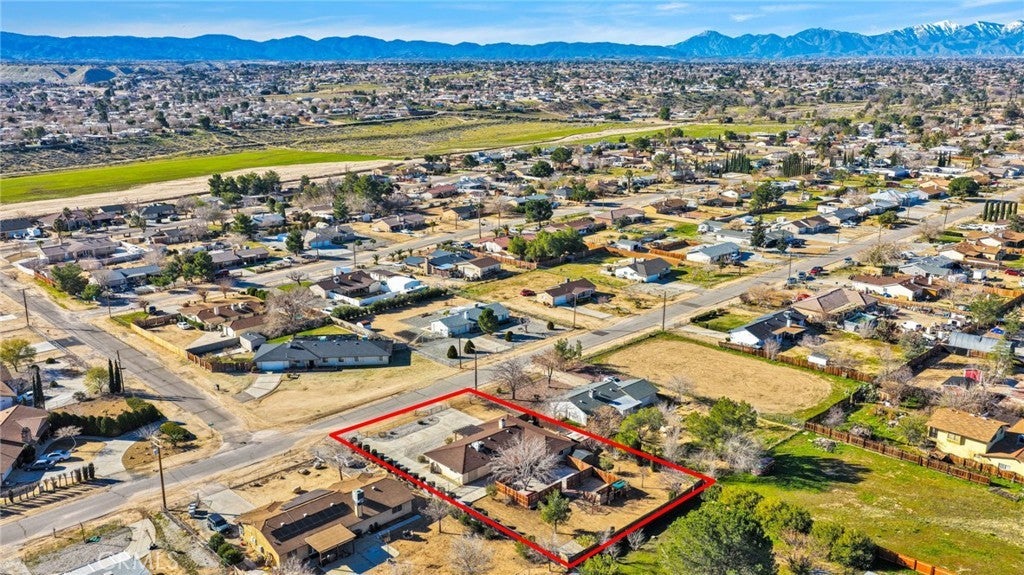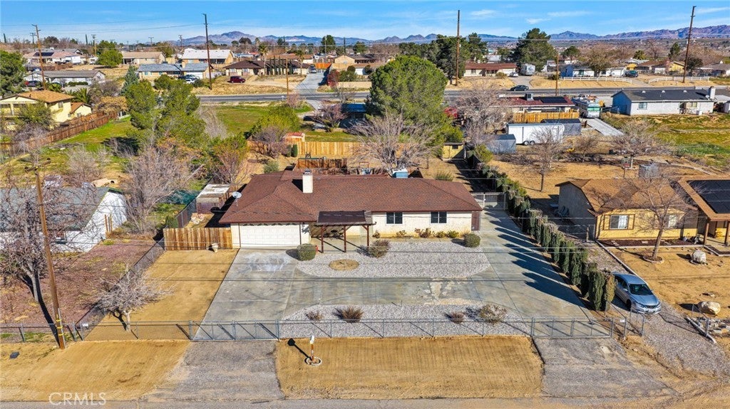 Welcome to this beautifully updated 4-bedroom, 2-bath home in the desirable city of Hesperia, showcasing magnificent mountain views and exceptional functionality inside and out. Set behind full perimeter fencing, the property features a circular driveway, RV access with wide side gates, and extensive concrete, offering ample parking and versatility. Inside, the home offers a bright and open layout with tile flooring throughout the main living areas, a charming brick fireplace, and a spacious bonus room ideal for a game room, home office, or additional living space. The updated kitchen features Crystal White quartz countertops, brand new stainless-steel range and dishwasher, generous cabinetry, and a breakfast bar that opens to the dining area. Brand-new SPC flooring adds durability and modern style. The primary bedroom includes French doors leading directly to the backyard, creating seamless indoor-outdoor living. Both bathrooms are clean and updated with modern finishes. Recent improvements also include new windows, enhancing comfort and energy efficiency. The backyard is designed for enjoyment and flexibility, featuring a large covered patio, mature mulberry shade tree, walking paths, open yard space, and a chicken coop/shed area. The lot offers excellent privacy, room to entertain, garden, or customize, all while enjoying sweeping mountain backdrops. Aerial views highlight the property’s generous lot and convenient location. Ideally situated near shopping, dining, schools, and major commuter routes, this home offers the perfect blend of space, upgrades, and High Desert lifestyle. A must-see property with endless possibilities.