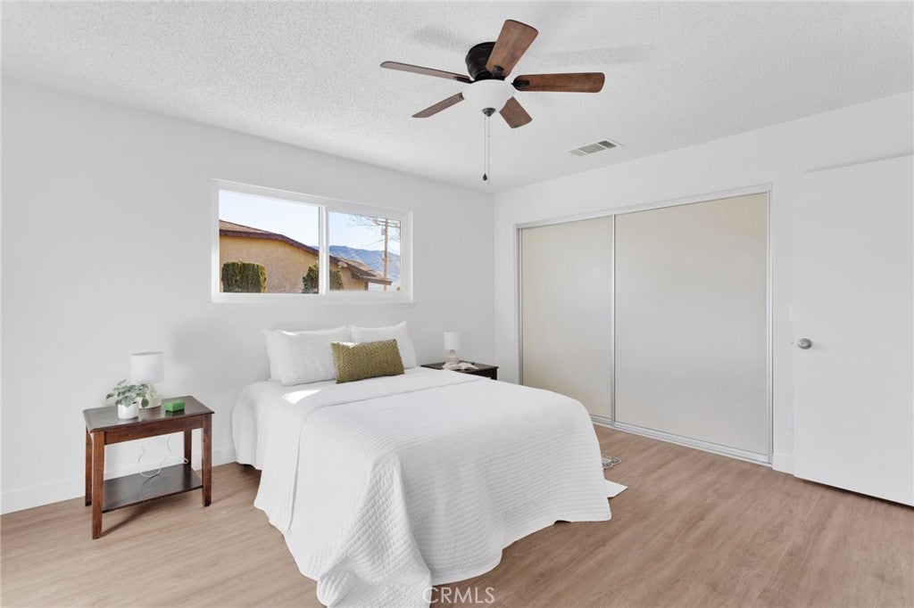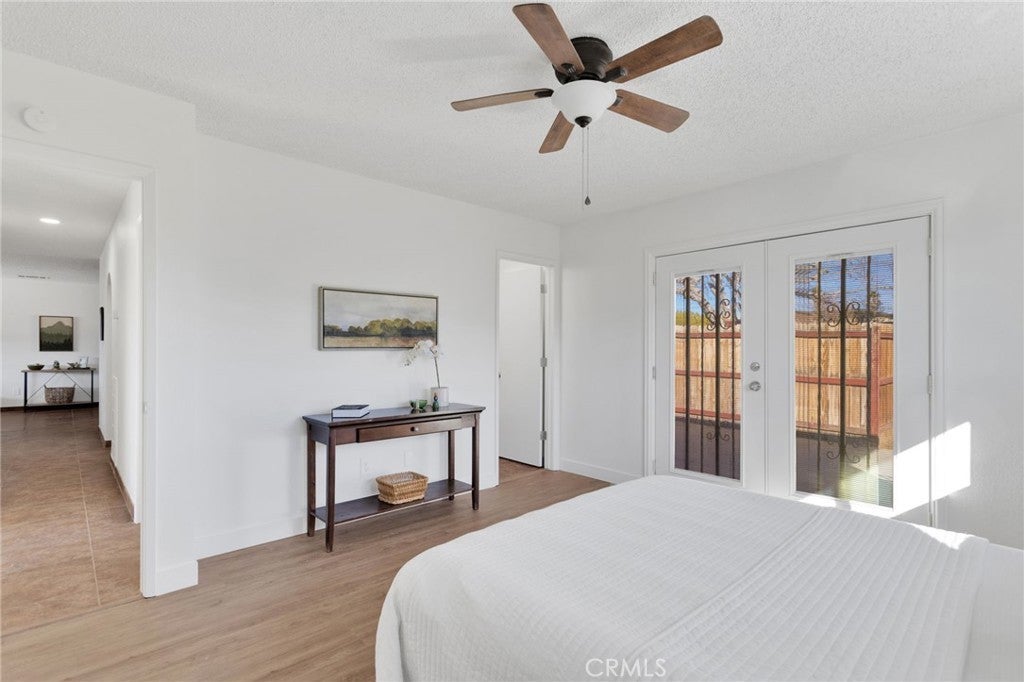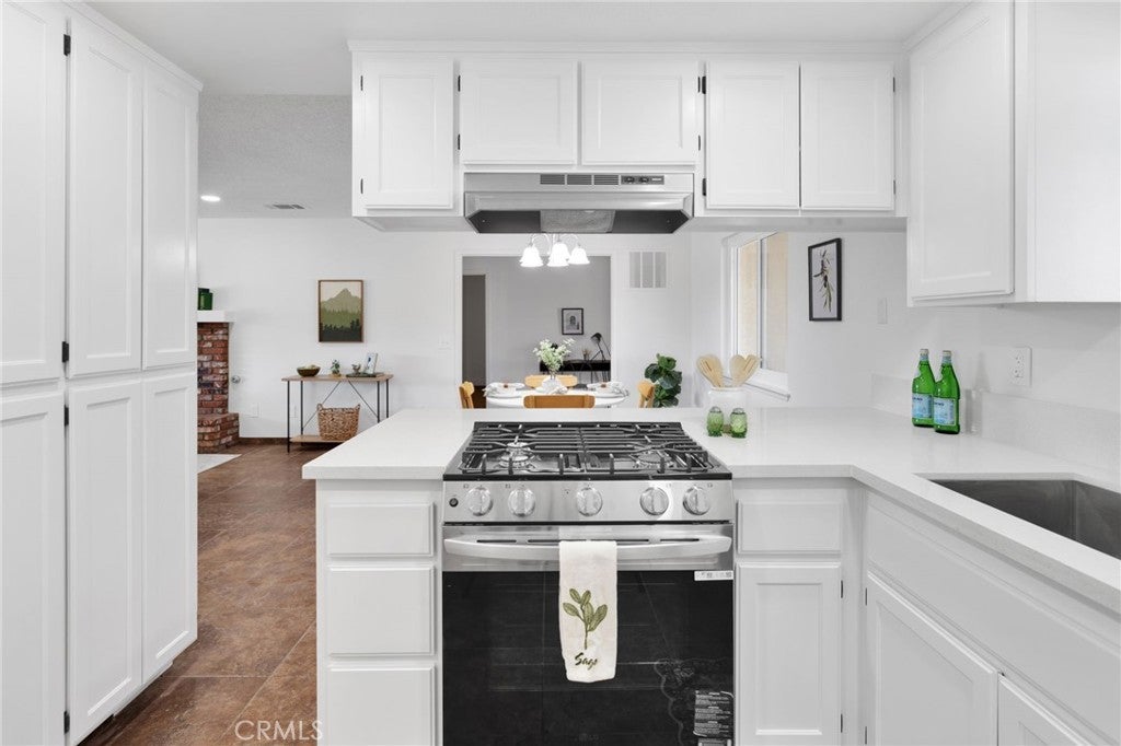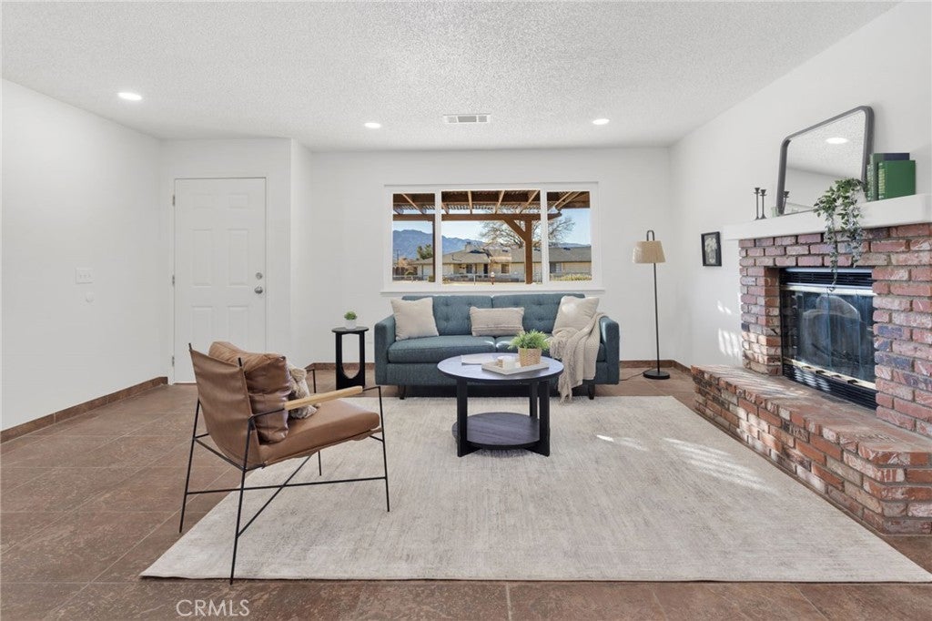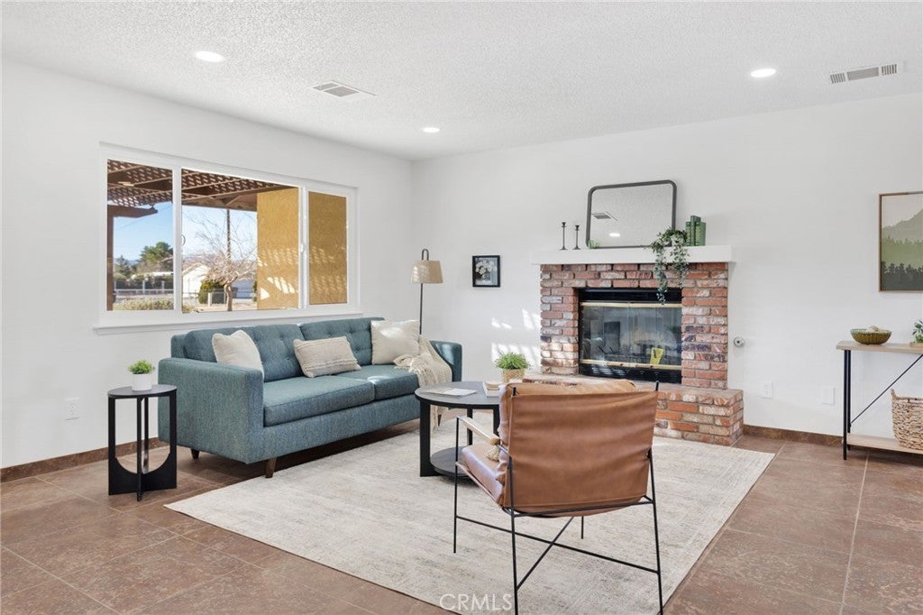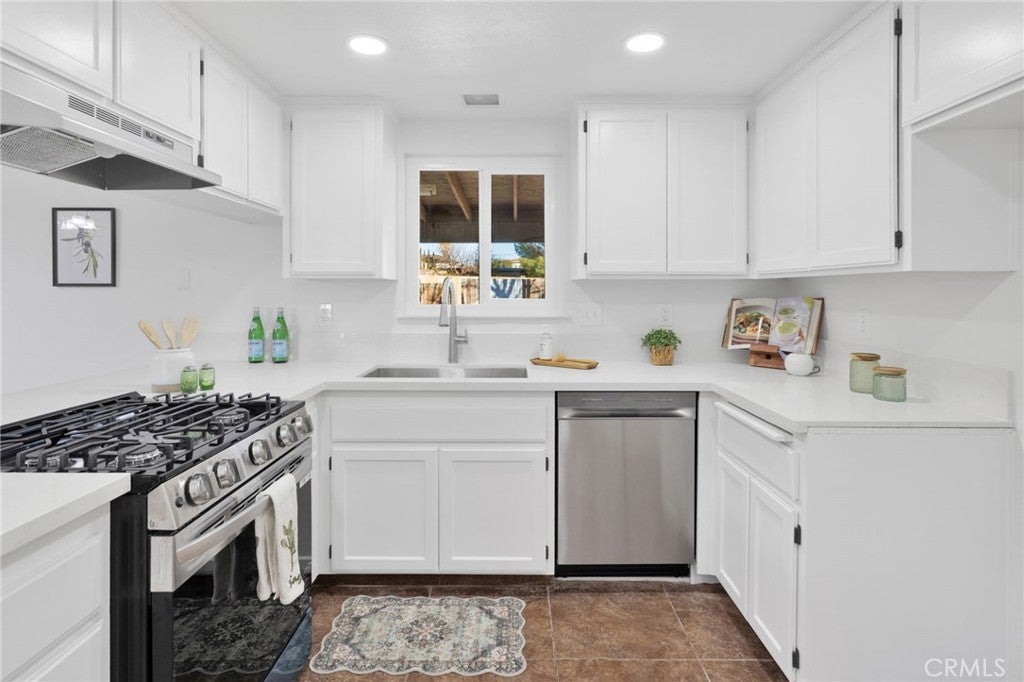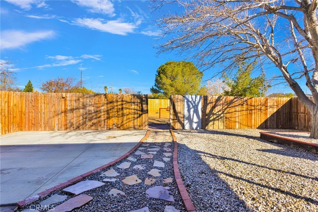 Welcome to this beautifully updated 4-bedroom, 2-bath home in the desirable city of Hesperia, showcasing magnificent mountain views and exceptional functionality inside and out. Set behind full perimeter fencing, the property features a circular driveway, RV access with wide side gates, and extensive concrete, offering ample parking and versatility. Inside, the home offers a bright and open layout with tile flooring throughout the main living areas, a charming brick fireplace, and a spacious bonus room ideal for a game room, home office, or additional living space. The updated kitchen features Crystal White quartz countertops, brand new stainless-steel range and dishwasher, generous cabinetry, and a breakfast bar that opens to the dining area. Brand-new SPC flooring adds durability and modern style. The primary bedroom includes French doors leading directly to the backyard, creating seamless indoor-outdoor living. Both bathrooms are clean and updated with modern finishes. Recent improvements also include new windows, enhancing comfort and energy efficiency. The backyard is designed for enjoyment and flexibility, featuring a large covered patio, mature mulberry shade tree, walking paths, open yard space, and a chicken coop/shed area. The lot offers excellent privacy, room to entertain, garden, or customize, all while enjoying sweeping mountain backdrops. Aerial views highlight the property’s generous lot and convenient location. Ideally situated near shopping, dining, schools, and major commuter routes, this home offers the perfect blend of space, upgrades, and High Desert lifestyle. A must-see property with endless possibilities.