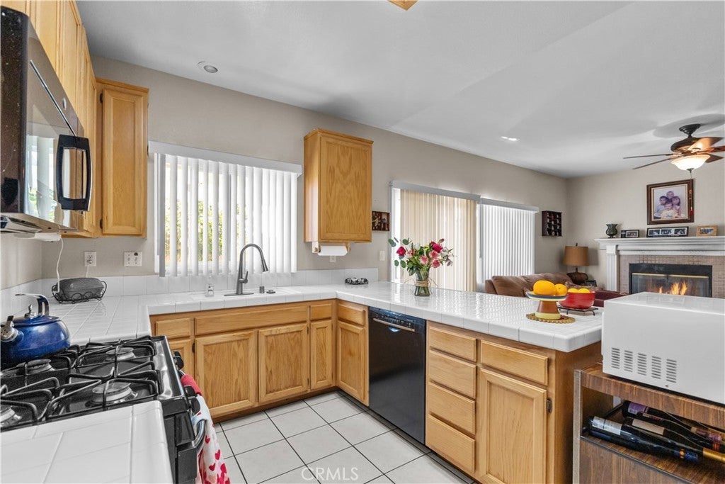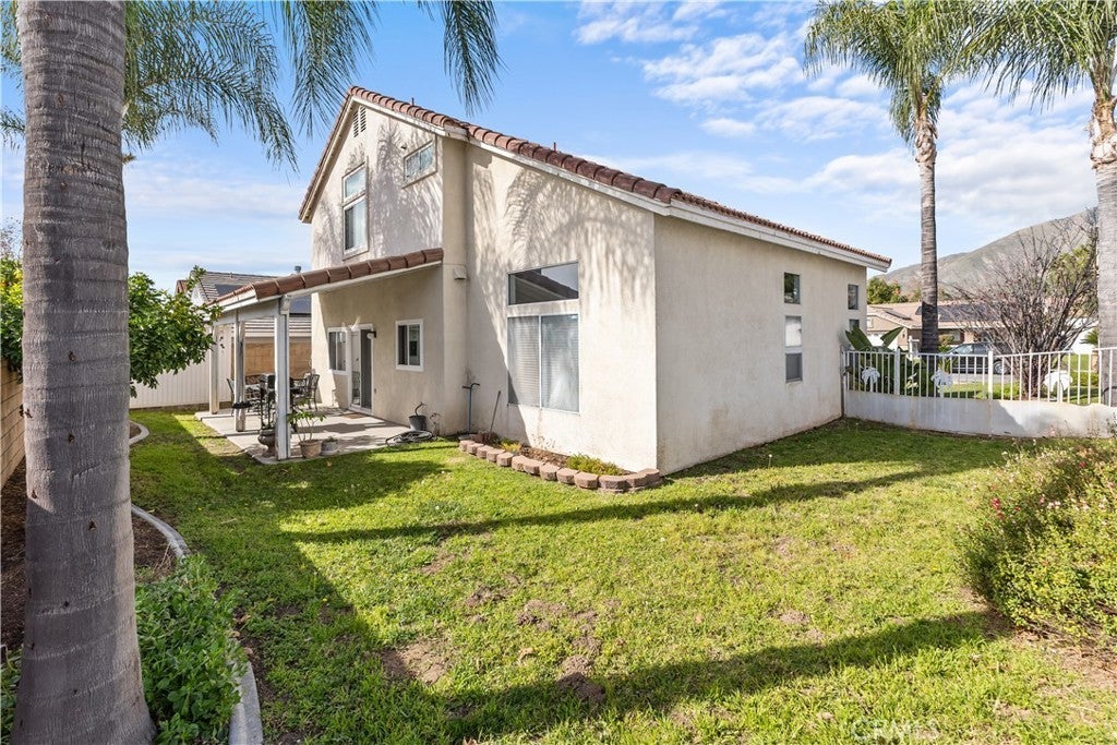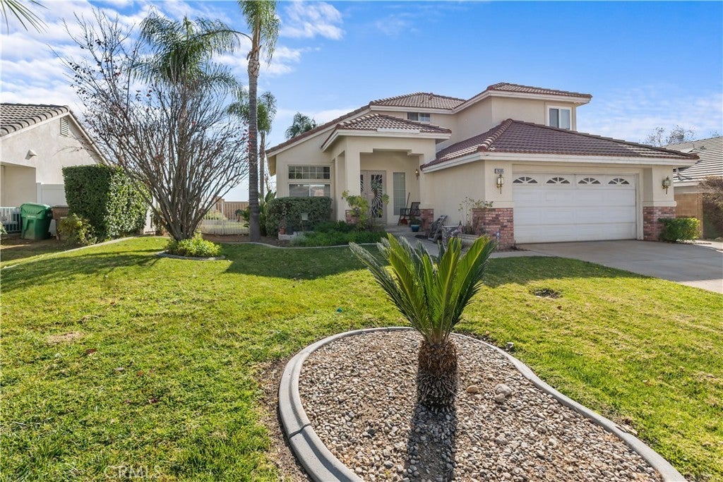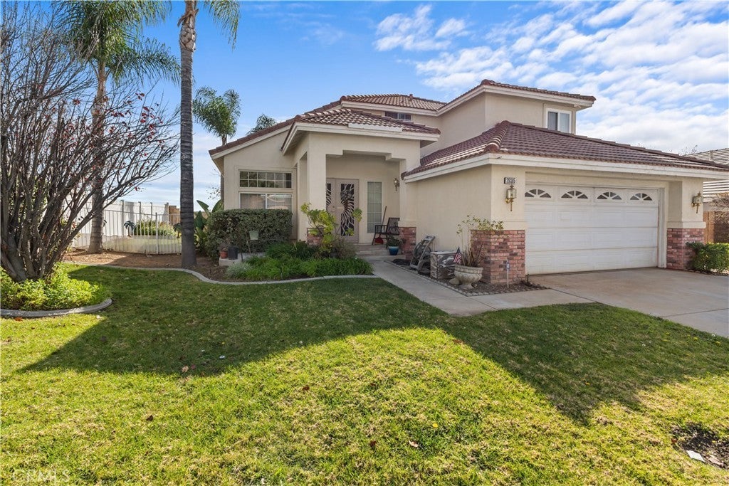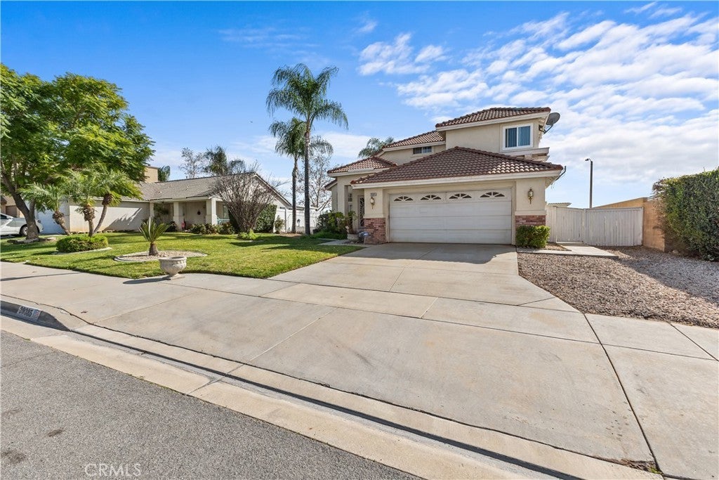 Just Listed! Don’t miss this beautiful 4 bedroom, 3 bath home, designed for comfort. As you enter the home step inside to a large living room and formal dining area, ideal for gatherings. Also downstairs is the lovely family room with a cozy fireplace flows seamlessly into the kitchen featuring tile countertops, and abundant cabinets. This home includes a full bath downstairs and bedroom with a double door entry, perfect for guests or a home office. Upstairs is 3 additional bedrooms with spacious master suite that offers two closets and a master bath with dual sinks, shower tub combo and separate toilet area. This home also features separate laundry room with great cabinet space, a beautiful security door and 2-car garage. Step outside to your private backyard, complete with a covered patio, and fruit trees including lemon, orange, and grapefruit. The perfect retreat for relaxing or entertaining. This is a lovely family home!!