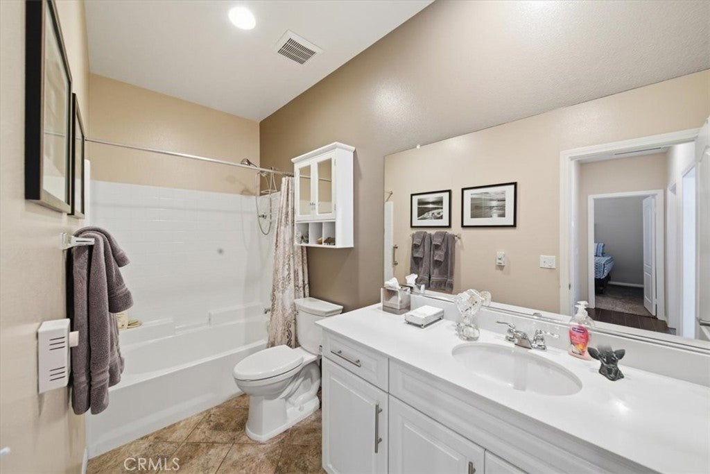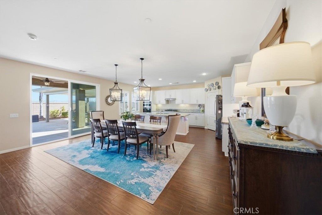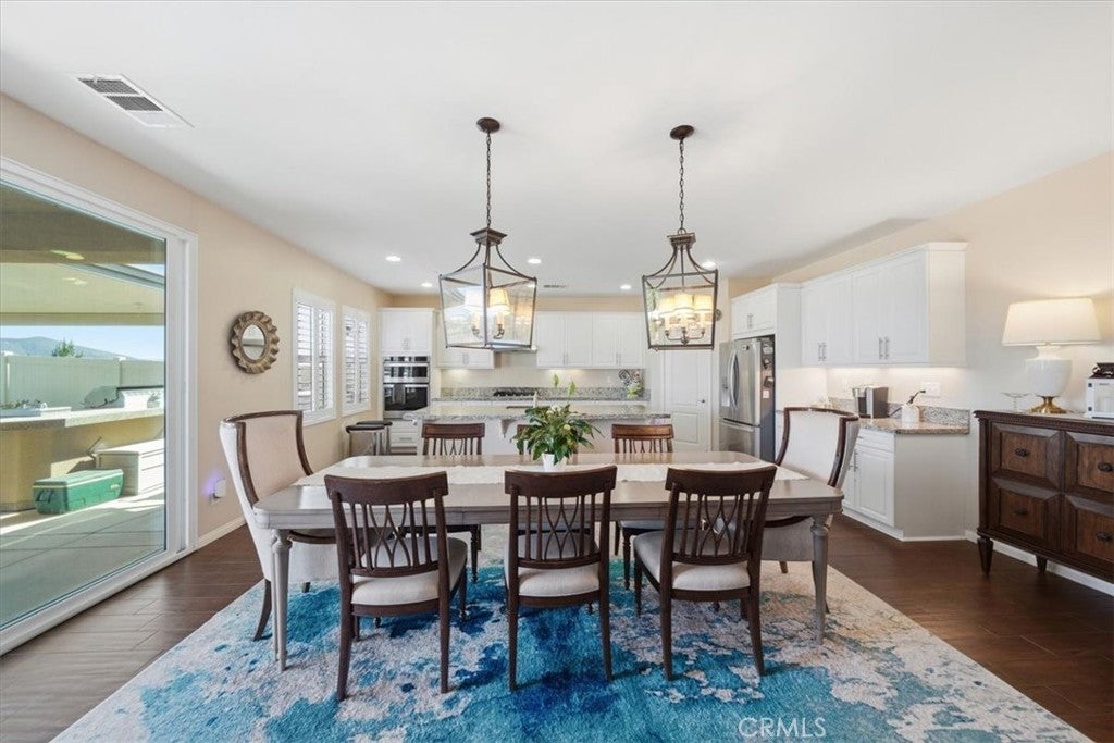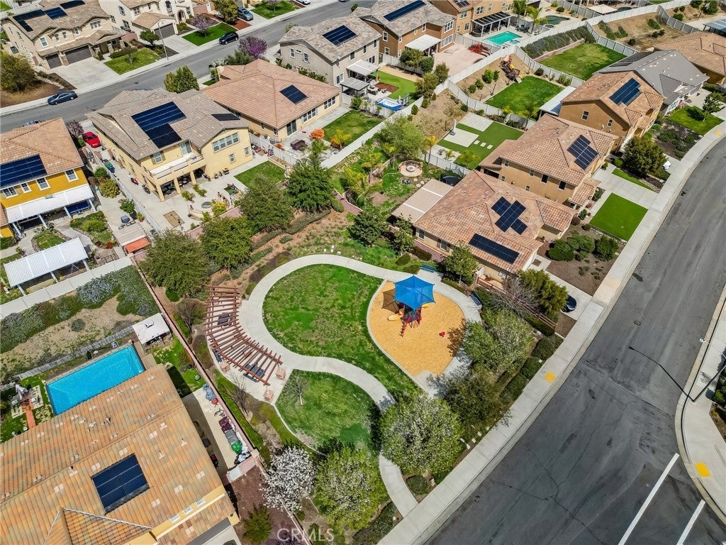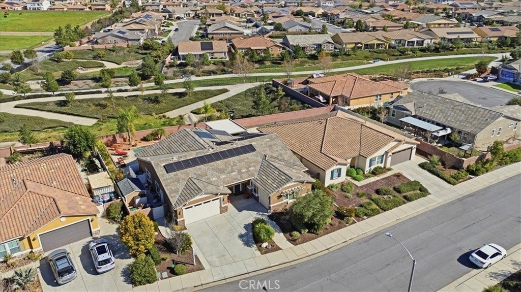Resort-style living, breathtaking mountain views, and exceptional storage come together in this highly upgraded home featuring a sparkling saltwater pool, owned solar for both the home and pool, and a rare third-car garage with JADU potential. With no rear-facing neighbors, the backyard opens to stunning, unobstructed mountain views, creating a private and peaceful retreat you will enjoy every day. The backyard is designed for both relaxation and entertaining, anchored by the saltwater pool, outdoor cooking area, gas firepit, and multiple covered patio spaces including a California room and a vinyl-covered patio. Mature, drought-tolerant landscaping surrounds the space, with lemon, lime, orange, and peach trees, plus a garden area with fresh thyme and sage, making this an outdoor oasis with beauty and function. Inside, the open-concept floorplan is bright and inviting, featuring luxury vinyl tile and plush carpet, plantation shutters throughout, and a large dining area with elegant drop lighting that flows effortlessly into the kitchen. The kitchen offers granite countertops, under-cabinet lighting, a large center island, added cabinetry for extra storage that completes the space. The primary suite is a true retreat with a beautifully remodeled and handicap-accessible bathroom, and a custom-built walk-in closet. Two additional bedrooms also feature walk-in closets, providing even more built-in storage throughout the home. This home stands out for its incredible storage and functionality. The property features a separate two-car garage with extensive overhead storage and built-in shelving, along with a detached single-car garage that is ideal for a workshop, home gym, extra storage, or even a future JADU conversion. Additional highlights include an extended driveway, cabinets and sink in the laundry room, a tankless water heater, and multiple storage sheds in the backyard. Located in a low-HOA community with four parks, a workout park, scenic walking trails, and friendly neighbors, this home offers the perfect blend of privacy, convenience, and lifestyle. With its combination of pool, views, energy efficiency, storage, and expansion potential, this property is a rare and highly desirable opportunity. Do not miss out on this amazing opportunity, schedule a showing today!