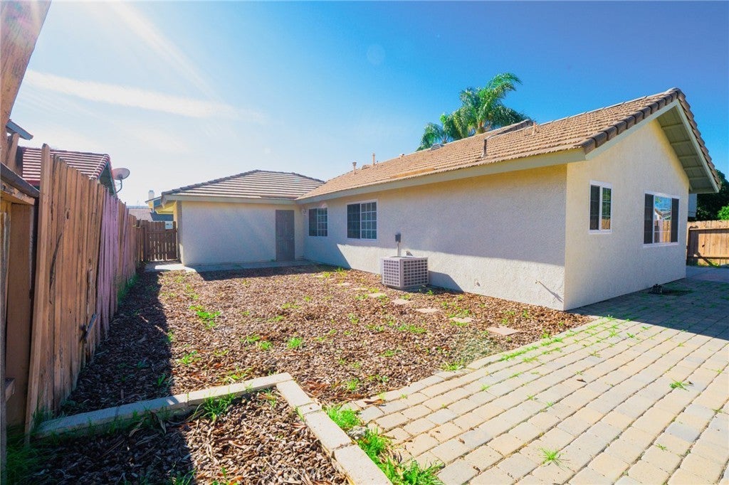 Discover this charming single-story residence in the desirable Rainbow Ridge neighborhood of Moreno Valley. This well-designed floor plan offers 3 bedrooms and 2 full bathrooms in approximately 1,248 sq ft of comfortable living space, set on a generous ~7,405 sq ft lot. A bright and open interior flows seamlessly from room to room, featuring a gourmet kitchen with granite countertops, stainless steel appliances, abundant cabinetry, and tile flooring throughout the main hall. The living and family rooms provide a welcoming atmosphere with a cozy fireplace — perfect for gatherings or relaxed everyday living. Large bedrooms with carpeted floors and ceiling fans enhance the comfort of this home, while central air conditioning ensures year-round climate control. The exterior impresses with fully landscaped front yard and a spacious backyard with concrete and paver surfaces, ideal for outdoor entertaining and a dog run. A rare 3-car attached garage offers plenty of parking and storage options. Located near schools, shopping, dining, and major freeways for convenient commuting, this property blends classic suburban living with great accessibility. Don’t miss this opportunity in a well-established Moreno Valley community — a must-see home!