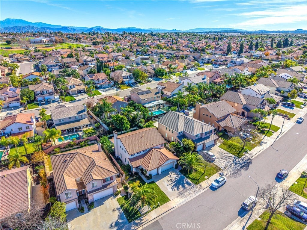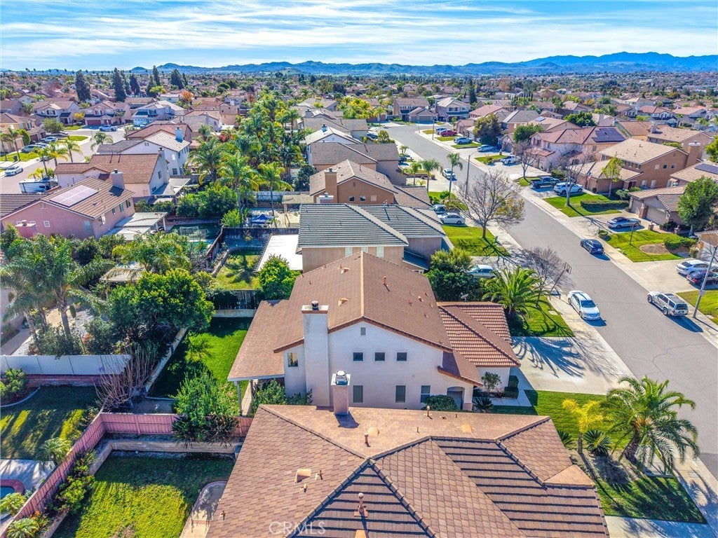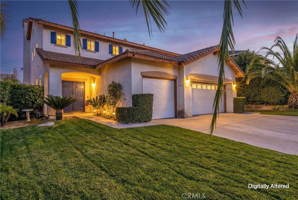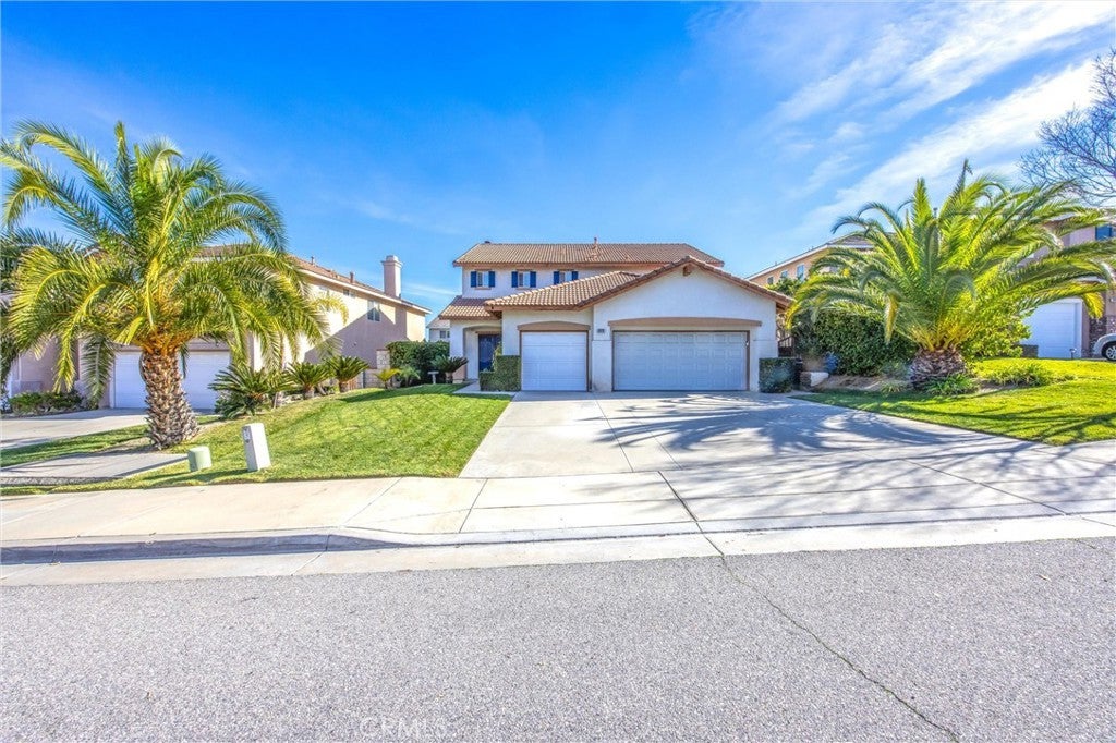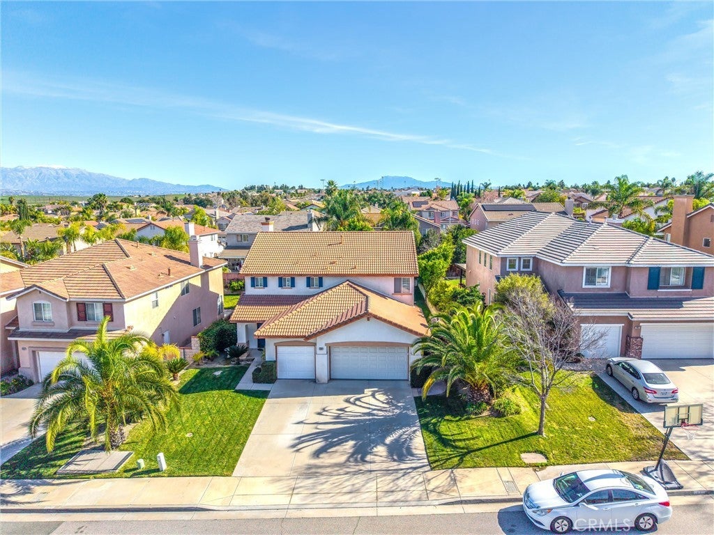 Extended covered patio and large back lawn perfect for entertaining, pets and family! Spacious 4 bed, 3 bath home available in the popular and family-friendly Orangecrest, Riverside. Double-door entry opens onto cathedral ceilings and a balcony overlooking the family room. Large kitchen open to the living room with plenty of space for an additional table plus a full separate, formal dining room. Full downstairs bathroom with gold-rimmed glass tub-in-shower. Downstairs bedroom was configured as an office by builder but can easily be converted to a bedroom for added sleeping space. Upstairs primary ensuite boasts a large double wide vanity with separate sinks and counters, a walk-in shower, separate indoor spa tub, and two massive walk-in closets. Two extra bedrooms with built-in closets and a shared bathroom with double vanity and a classic tub-in-shower. Upstairs laundry room for easy access. Plenty of natural lighting throughout the home. Large backyard lot boasts solid patio cover tricked out with built-in lighting and fans plus a custom, built-in BBQ island. Lawn is green and spacious for outdoor entertainment. Home just around the corner from the famous Orange Terrace Park and an easy walking distance from the nearest elementary school. Large three-car garage for lots of storage space plus three additional parking spaces on the front driveway. No HOA and low taxes! Close to all kinds of shopping and dining in all directions!