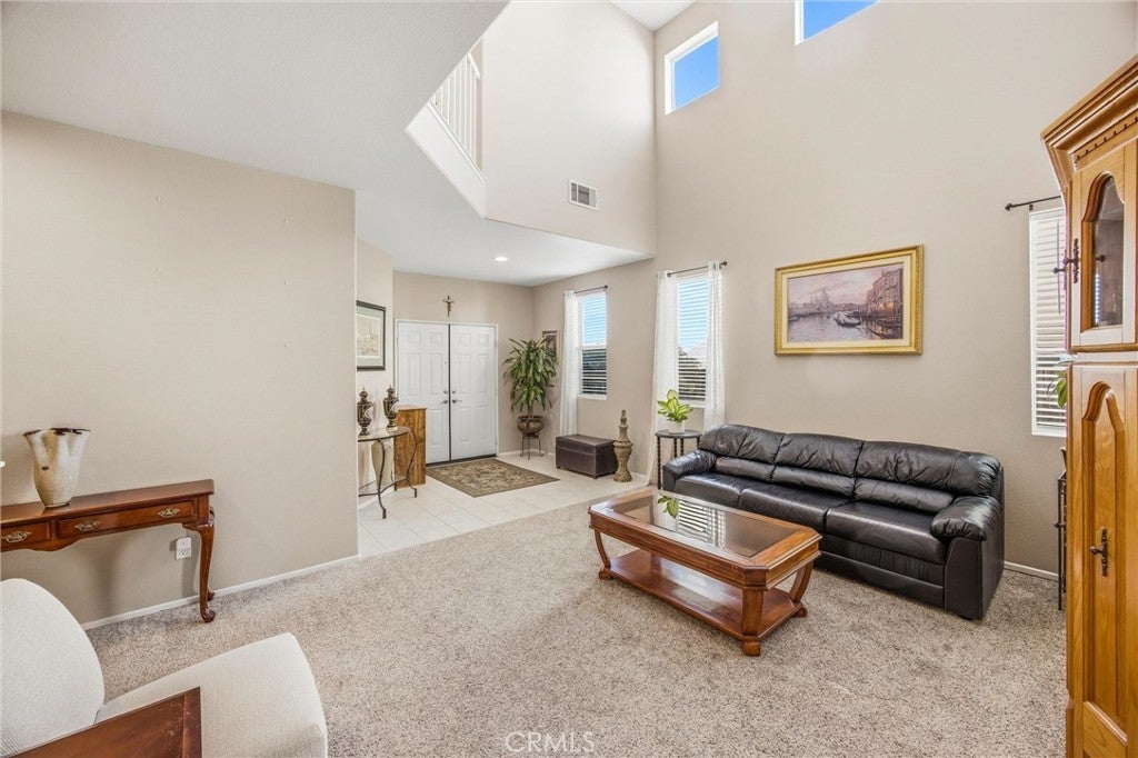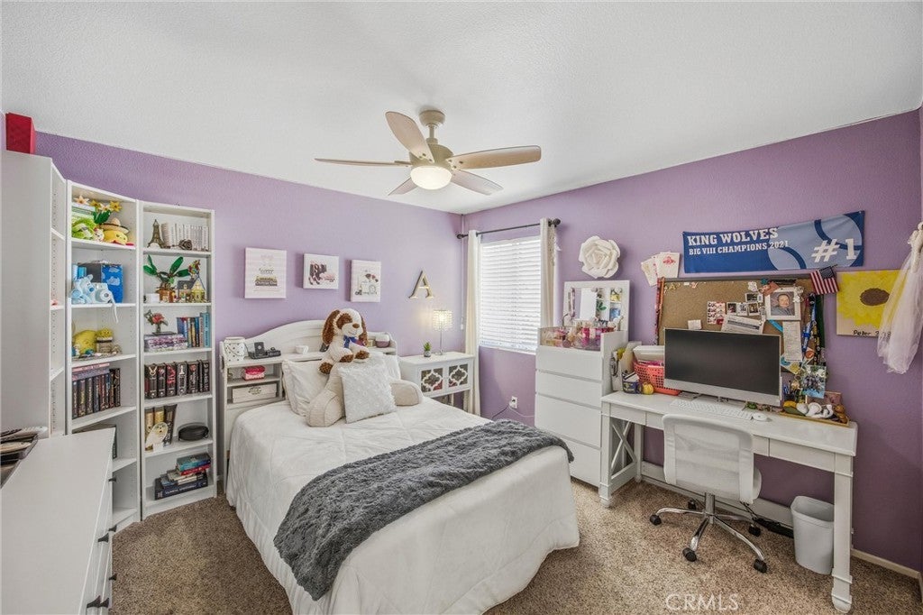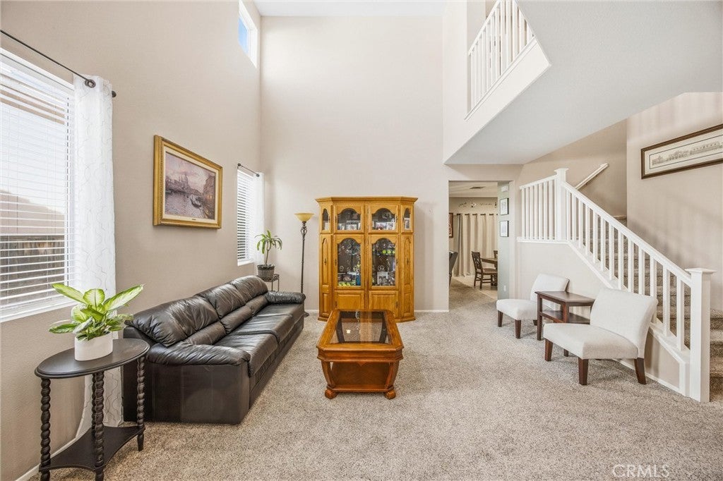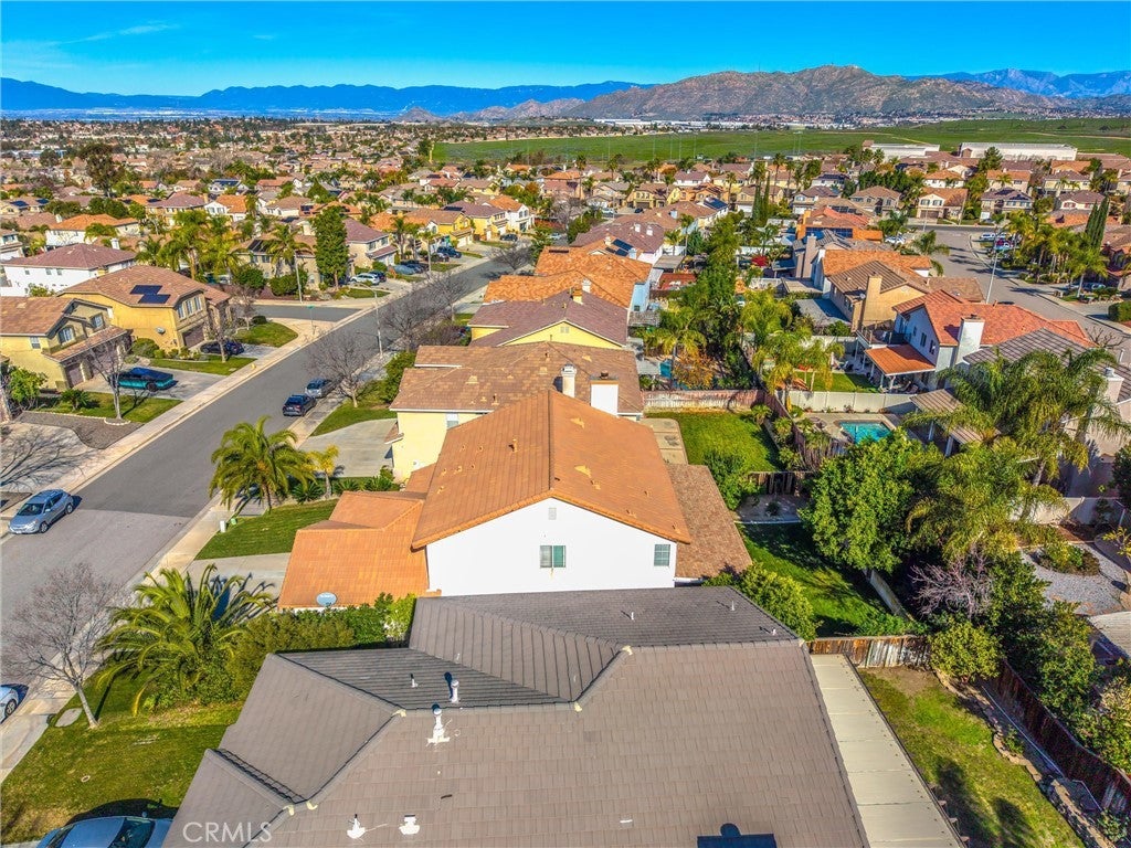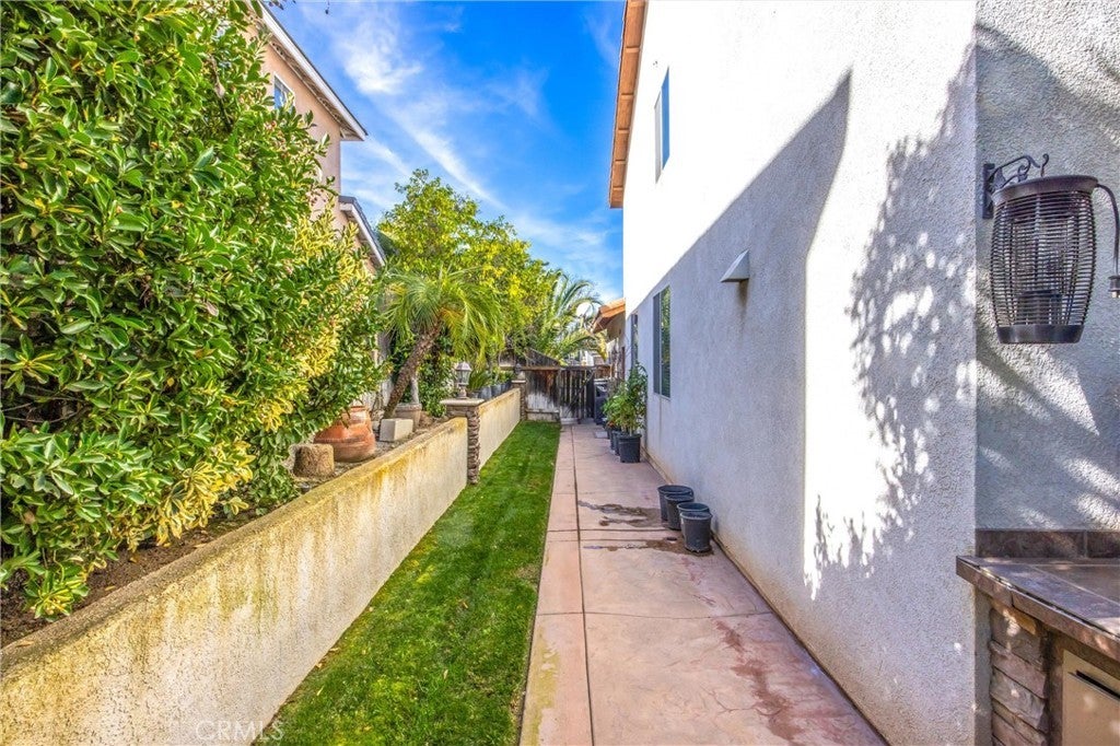 Extended covered patio and large back lawn perfect for entertaining, pets and family! Spacious 4 bed, 3 bath home available in the popular and family-friendly Orangecrest, Riverside. Double-door entry opens onto cathedral ceilings and a balcony overlooking the family room. Large kitchen open to the living room with plenty of space for an additional table plus a full separate, formal dining room. Full downstairs bathroom with gold-rimmed glass tub-in-shower. Downstairs bedroom was configured as an office by builder but can easily be converted to a bedroom for added sleeping space. Upstairs primary ensuite boasts a large double wide vanity with separate sinks and counters, a walk-in shower, separate indoor spa tub, and two massive walk-in closets. Two extra bedrooms with built-in closets and a shared bathroom with double vanity and a classic tub-in-shower. Upstairs laundry room for easy access. Plenty of natural lighting throughout the home. Large backyard lot boasts solid patio cover tricked out with built-in lighting and fans plus a custom, built-in BBQ island. Lawn is green and spacious for outdoor entertainment. Home just around the corner from the famous Orange Terrace Park and an easy walking distance from the nearest elementary school. Large three-car garage for lots of storage space plus three additional parking spaces on the front driveway. No HOA and low taxes! Close to all kinds of shopping and dining in all directions!