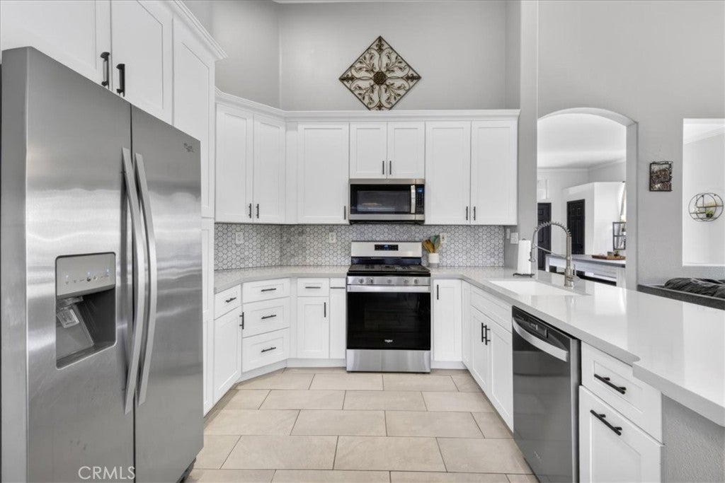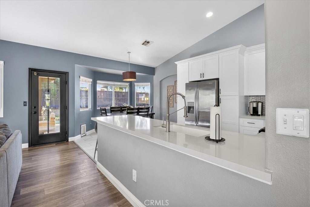 Welcome to 26637 Trumble Road — a beautifully upgraded, move-in ready home located in the heart of Menifee. Offering 1,585 square feet of living space on a spacious 7,405 sq. ft. lot, this home combines modern upgrades, functional design, and everyday comfort. Step inside to discover luxury vinyl plank flooring throughout, creating a seamless, stylish, and low-maintenance interior. The fully remodeled kitchen features quartz countertops, custom cabinetry, and updated appliances, making it perfect for both everyday living and entertaining. Quartz surfaces continue into the bathrooms, complemented by upgraded tile work that adds a clean, contemporary feel. One of the standout features of this home is the extensive custom cabinetry throughout, including the kitchen, bathrooms, laundry room, and hallway, providing abundant storage while maintaining a refined, high-end look. Additional upgrades include a tankless water heater for energy efficiency and on-demand hot water, EV charging capability for modern convenience, and an epoxy-coated garage floor, creating a durable and polished garage space. The backyard offers a covered patio and generous outdoor space, ideal for relaxing, entertaining, or enjoying Southern California’s year-round mild weather. Located in the growing and desirable city of Menifee, residents enjoy close proximity to parks, shopping, dining, schools, and community amenities. Convenient access to the I-215 freeway allows for easy commuting to surrounding cities and employment centers. With extensive upgrades already completed, 26637 Trumble Road offers a rare opportunity to own a truly move-in ready home in one of Menifee’s established neighborhoods.