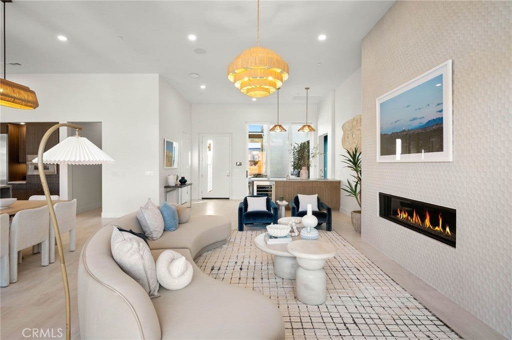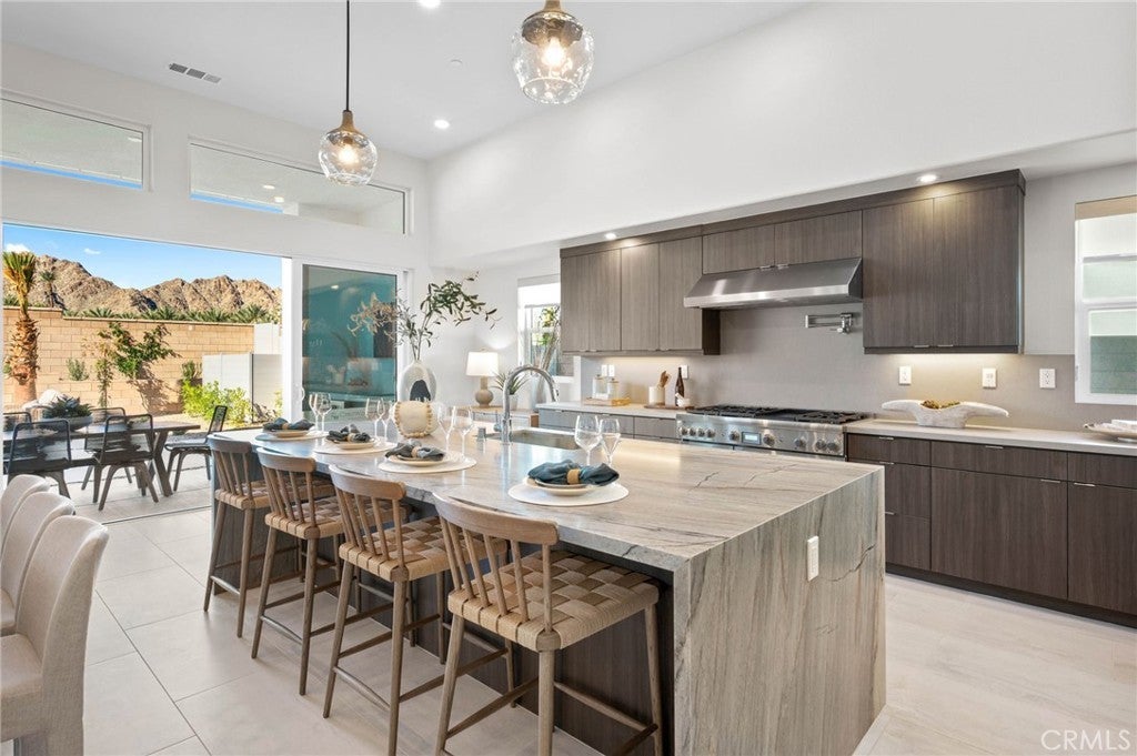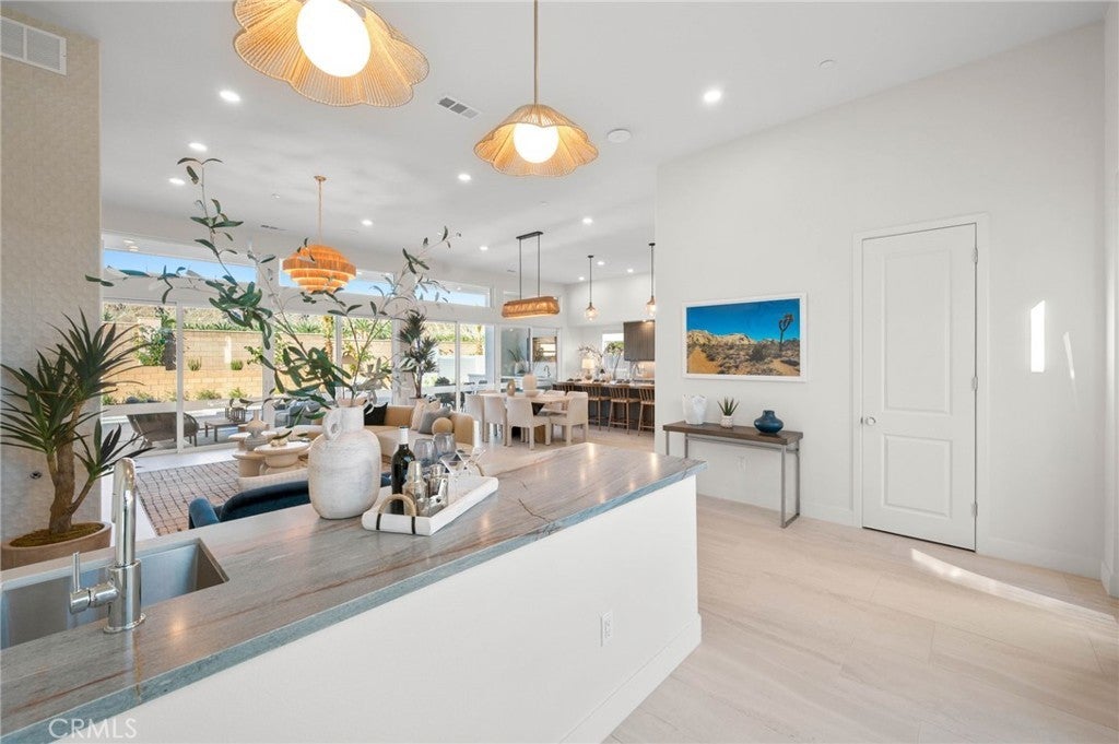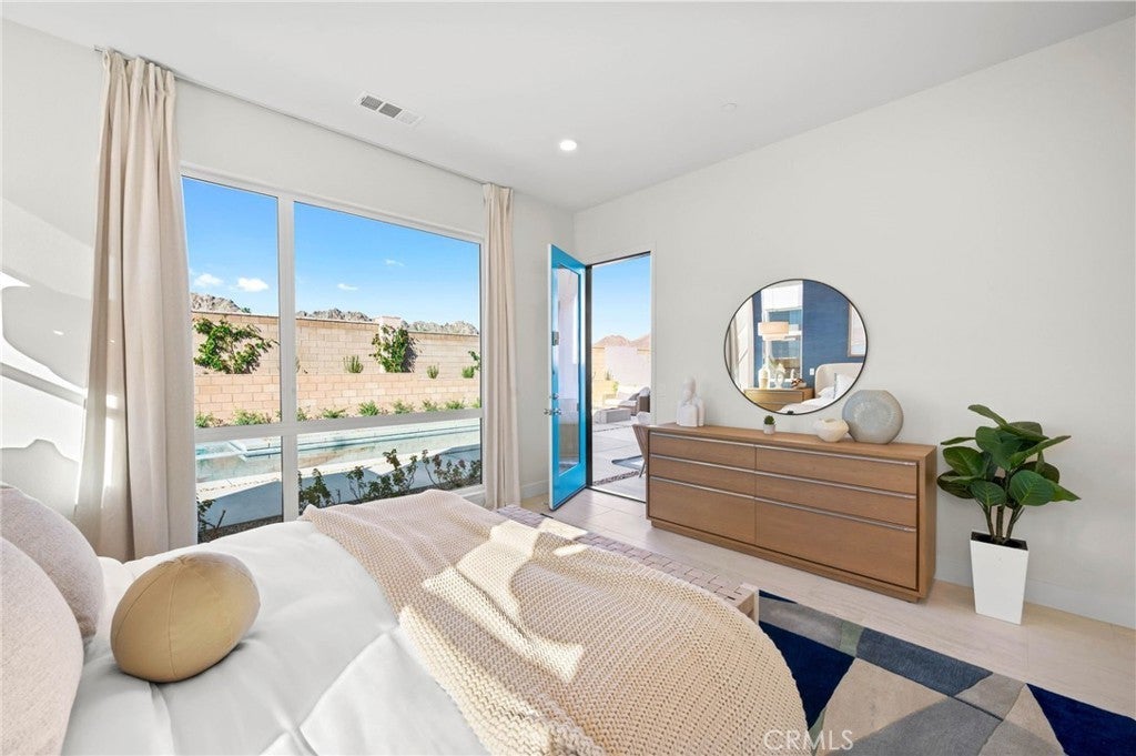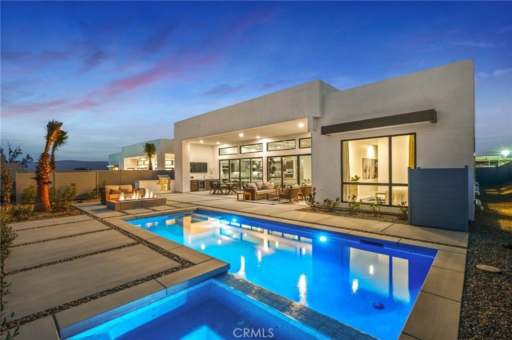 Welcome to Oasis by Crestwood Communities, a gated community offering modern desert living with breathtaking mountain views in the heart of La Quinta. This unique single-story modern home features 2,458 square feet with 3 bedrooms, 3.5 bathrooms, and a 3-car garage, and is accessed through a private gated courtyard that provides both privacy and style. Inside, soaring ceilings, striking 12x24 tile floors, and an open-concept great room are filled with natural light from front to back, enhanced by expansive sliding glass doors that create a seamless indoor-outdoor flow to the covered patio. The outdoor space is resort style, perfect for entertaining or relaxing beside the included pool and spa. The open kitchen is designed for both functionality and elegance, featuring designer quartz countertops, an oversized island with waterfall edges, modern flat panel cabinetry with warm accent lighting, soft-close hinges, and stainless-steel Bosch appliances. Each bedroom includes its own en-suite bathroom, while the primary suite offers a resort-style retreat with direct access to the covered patio and a spa-inspired bathroom, thoughtfully separated from guest bedrooms for added privacy. Solar is available for purchase or lease, and the home includes many additional amenities. Conveniently located near golf, hiking, biking, and horseback riding, yet away from traffic and congestion. Model grand opening is Saturday, January 24th. Photos shown are of the model home; the subject property is currently under construction.