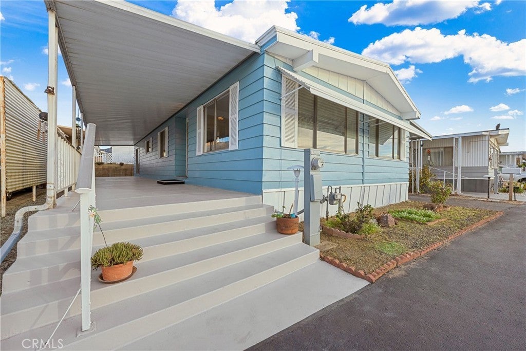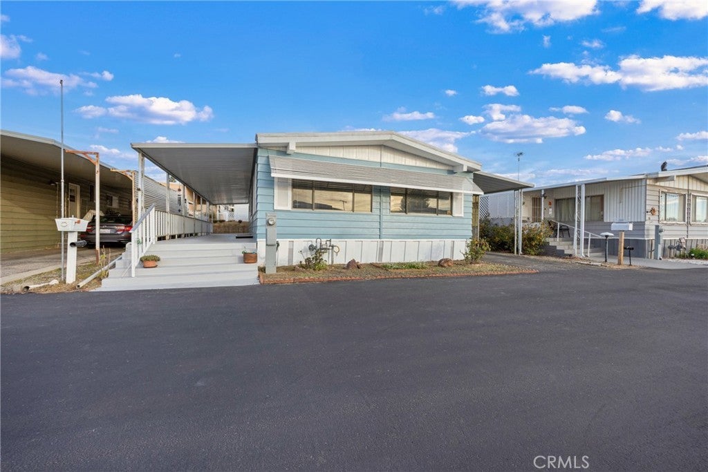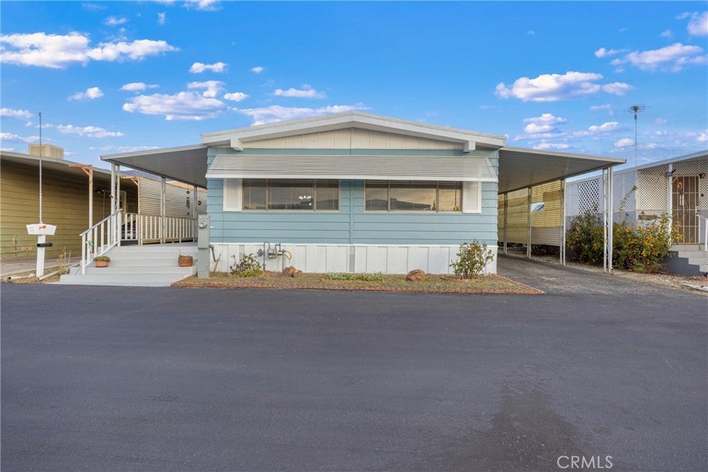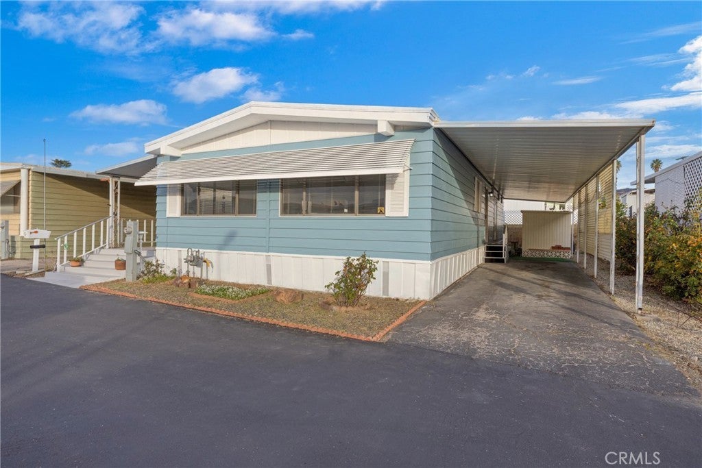 Welcome to this beautifully updated double-wide home located in a desirable 55+ senior community. Offering approximately 1,440 sq. ft., this spacious home features 2 bedrooms and 2 bathrooms with an open and inviting layout. The expansive living room boasts vaulted ceilings and an abundance of windows, filling the space with natural light. The oversized primary bedroom includes a large mirrored-door closet and a convenient makeup vanity. Recent upgrades include new luxury vinyl plank flooring throughout, new carpet in the bedrooms, and fresh interior and exterior paint. Enjoy outdoor living with a full-length covered patio, freshly painted and perfect for relaxing or entertaining. Additional features include a covered carport and two storage sheds. The well-maintained park offers recently paved roads, a replastered community swimming pool, and a remodeled clubhouse, providing a comfortable and active lifestyle. Don’t miss this move-in-ready home in a welcoming senior community.