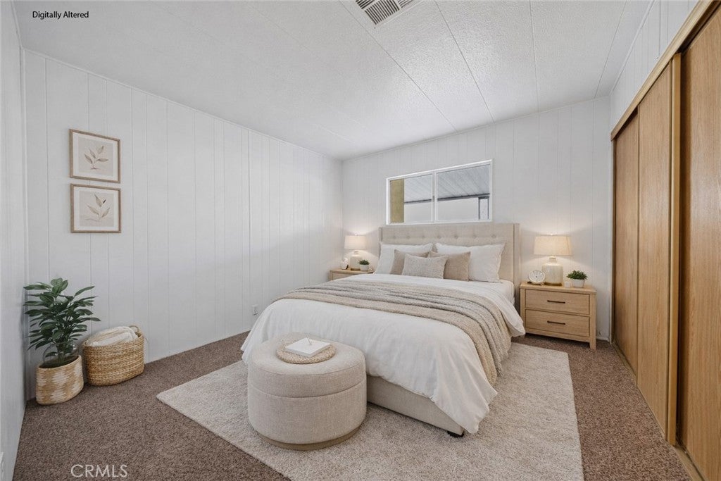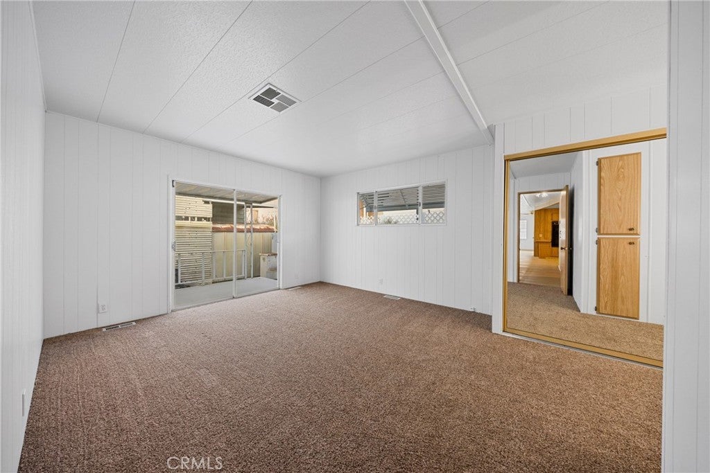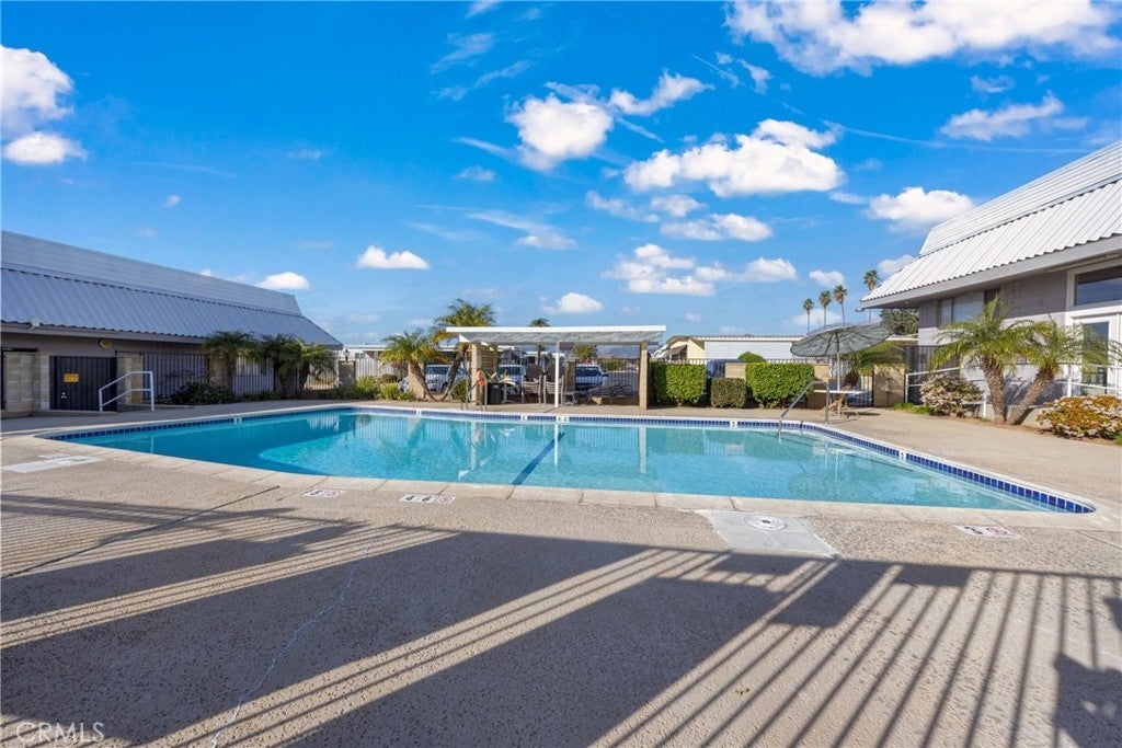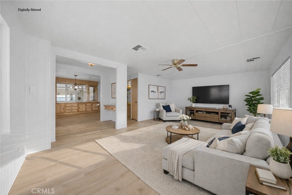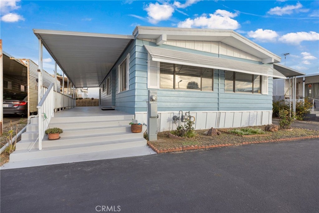 Welcome to this beautifully updated double-wide home located in a desirable 55+ senior community. Offering approximately 1,440 sq. ft., this spacious home features 2 bedrooms and 2 bathrooms with an open and inviting layout. The expansive living room boasts vaulted ceilings and an abundance of windows, filling the space with natural light. The oversized primary bedroom includes a large mirrored-door closet and a convenient makeup vanity. Recent upgrades include new luxury vinyl plank flooring throughout, new carpet in the bedrooms, and fresh interior and exterior paint. Enjoy outdoor living with a full-length covered patio, freshly painted and perfect for relaxing or entertaining. Additional features include a covered carport and two storage sheds. The well-maintained park offers recently paved roads, a replastered community swimming pool, and a remodeled clubhouse, providing a comfortable and active lifestyle. Don’t miss this move-in-ready home in a welcoming senior community.