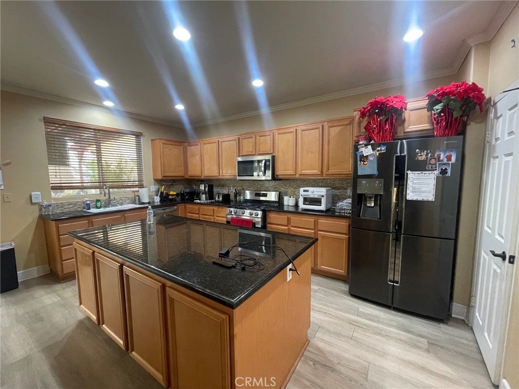 Welcome to Moreno Valley Ranch, where comfort, space, and community amenities come together in one of the area’s most desirable and sought-after neighborhoods—perfect for the whole family and flexible multigenerational living. Step inside this gorgeous, well-maintained home built in 2010 featuring a spacious and open floor-plan. This beautiful residence offers 5 bedrooms, including a convenient main-floor bedroom ideal for guests, extended family, or a home office, along with 3 full bathrooms, one located downstairs for added convenience. Home has been thoughtfully updated, showcasing clean, modern finishes and true move-in-ready condition. Enjoy a bright and inviting living room complete with a cozy fireplace and ceiling fan, perfect for relaxing evenings. The formal dining area flows into a beautiful spacious kitchen, featuring a large center island with granite countertops, recessed lighting, and abundant cabinetry for storage and functionality. Upstairs, you’ll find Master bedroom, nice and spacious, Master bathroom with 2 walk-in-closets, double sink, shower and separate tub. Generously sized bedrooms and well-appointed bathrooms that provide comfort, privacy, and space for everyone in the household. Also features Bonus room/ Family room and Separate Laundry Area upstairs. The backyard offers plenty of room to entertain or unwind, featuring a concrete patio and ample space with endless potential to customize to your lifestyle. Residents of Moreno Valley Ranch enjoy access to fantastic HOA amenities including a pool, spa, picnic areas, playgrounds, and sports courts. All of this is located in a prime area near Moreno Valley College, shopping, dining, golf courses, hospitals, and beautiful Lake Perris. This is a wonderful opportunity to own a spacious, well-kept home in one of Moreno Valley’s most desirable communities.